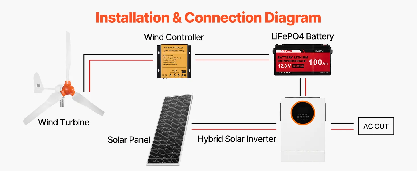 Pārvērtiet saules un vēja enerģiju uzticamā elektroapgādē ar mūsu komplektu, kas ietver 2 × 100 W saules paneļus un 400 W vēja turbīnu ar viedo MPPT kontrolieri, 1000 W hibrīdo saules invertoru un 12,8 V 100 Ah LiFePO₄ akumulatoru. Nodrošina stabilu un nepārtrauktu enerģijas padevi mājām, kemperiem, laivām, kempingam un citām vajadzībām.