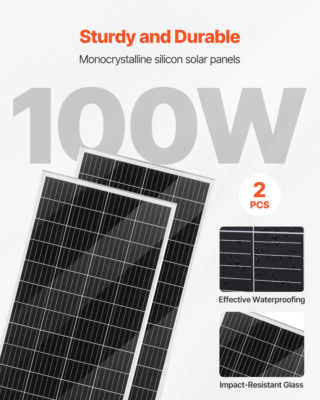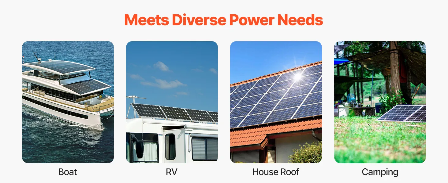 Komplektā esošie 200 W saules paneļi ar augstas efektivitātes monokristāliskiem elementiem un izturīgu stiklu nodrošina stabilu jaudu un augstu enerģijas pārveidošanas efektivitāti. Darbojas uzticami temperatūrā no -10 °C līdz +65 °C, izceļoties ar lielisku izturību pret laikapstākļiem.
