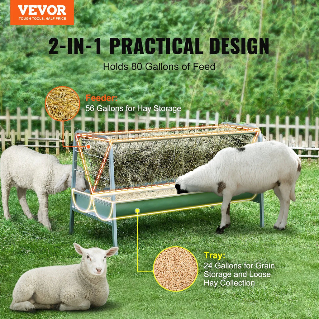 VEVOR 2-in-1 graudu un siena barotava, 303 l ietilpība, 150 cm garums, dziļā barošanas vanna, smagā tērauda barotava kazām un aitā