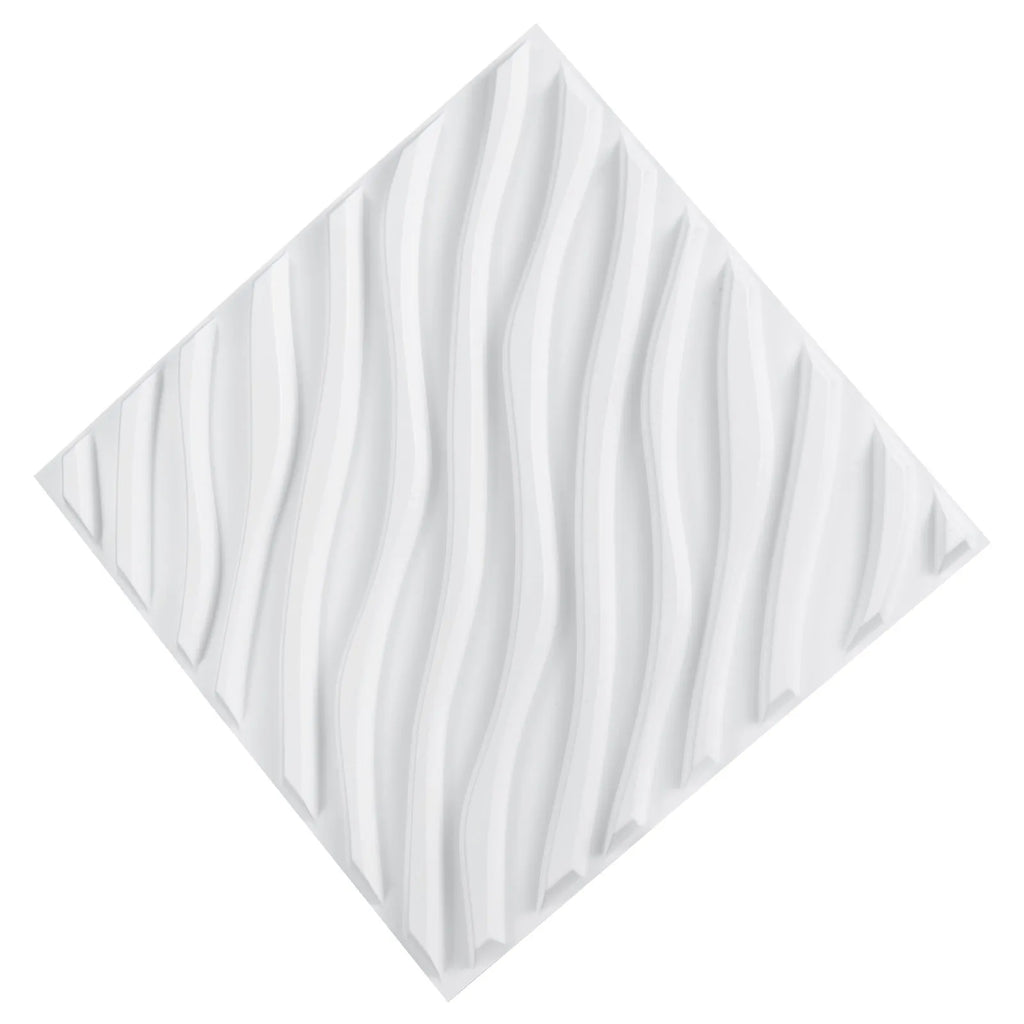 VEVOR 3D sienas paneļi, 12 gab., PVC minimālisma viļņu dizaina flīzes, 500 × 500 mm, kopējais pārklājums 3,0 m², akcenta sienas dekors interjeram griestiem, guļamistabai, viesistabai un spēļu telpai, matēti baltā krāsā