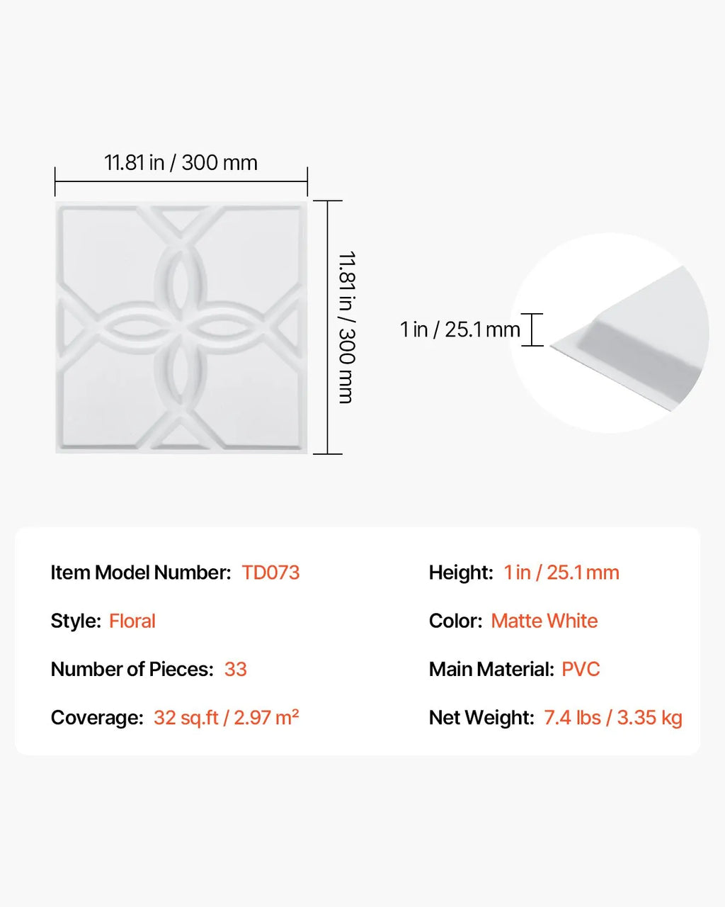 Komplektā ietilpst 33 dekoratīvi sienas paneļi ar kopējo pārklājuma laukumu 2,97 m². Ideāli piemēroti sienām aiz dīvāna, ap TV zonu, bāra letēm, kā arī ēdamistabas un viesistabas sienu noformēšanai.