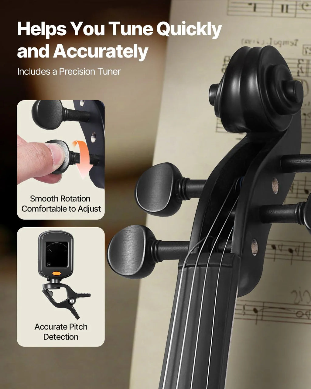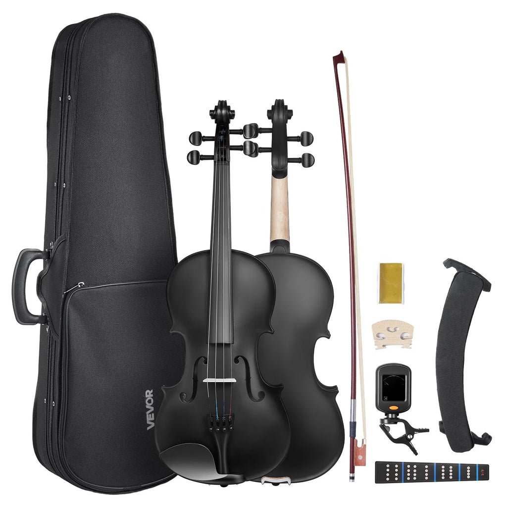 VEVOR 4/4 izmēra vijole 355 mm, masīvkoka komplekts iesācējiem ar futlāri un sveķiem, melna