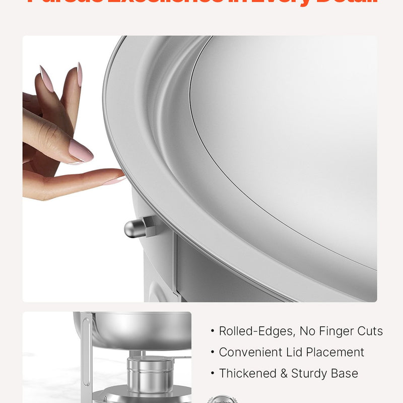 Elegants sudraba pārklājums: Šī bufetes ēdienu sildītāja modernā sudraba krāsa piešķir pasākumam izsmalcinātību. Neatkarīgi no tā, vai tas ir bankets, ballīte vai kāzas, šis stilīgais dizains papildina galda klājumu un uzlabo atmosfēru.