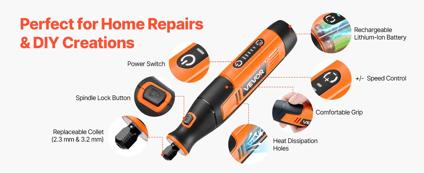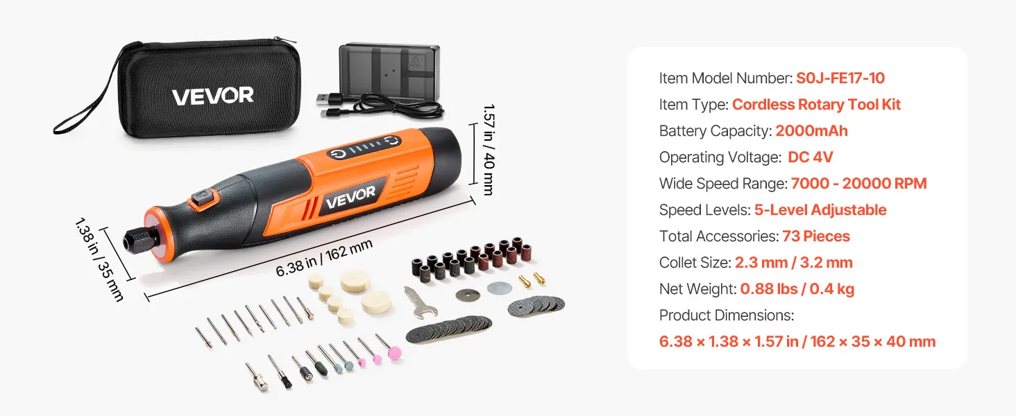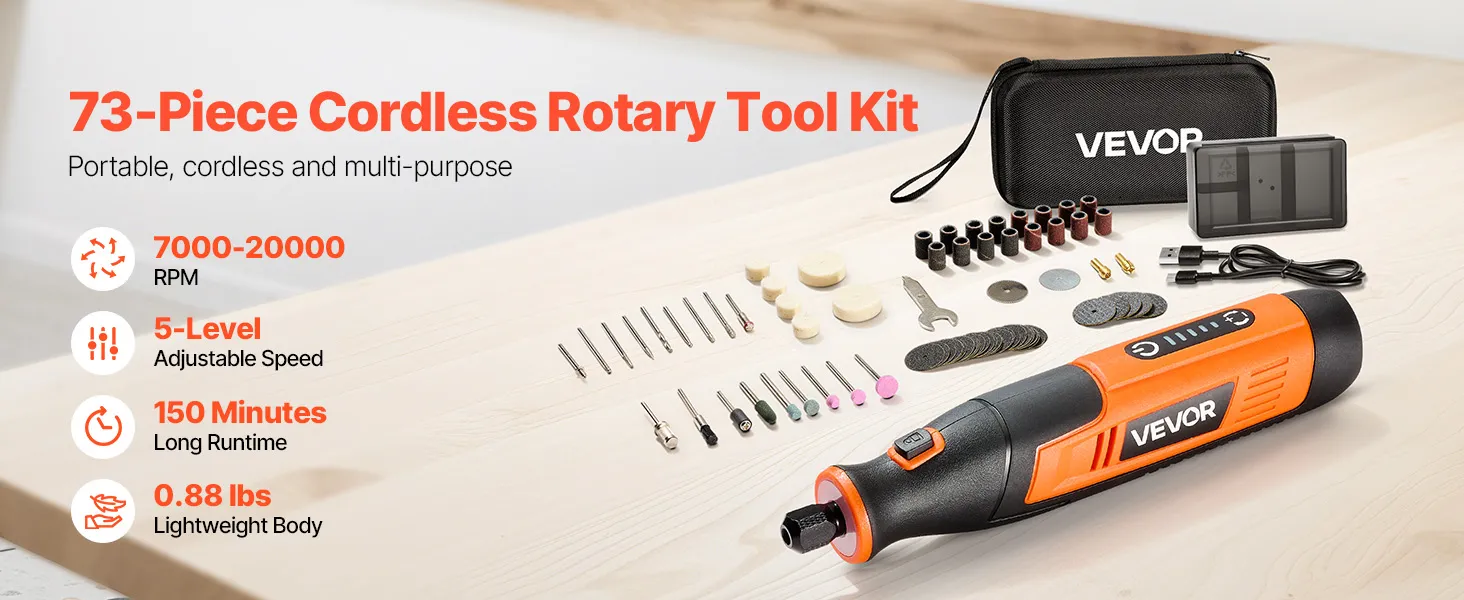 VEVOR 73 daļu bezvadu DC 4 V mini rotācijas instruments ar 5 ātrumiem (7000–20000 apgr./min.) gravēšanai, slīpēšanai, pulēšanai, grebšanai, griešanai un rokdarbiem