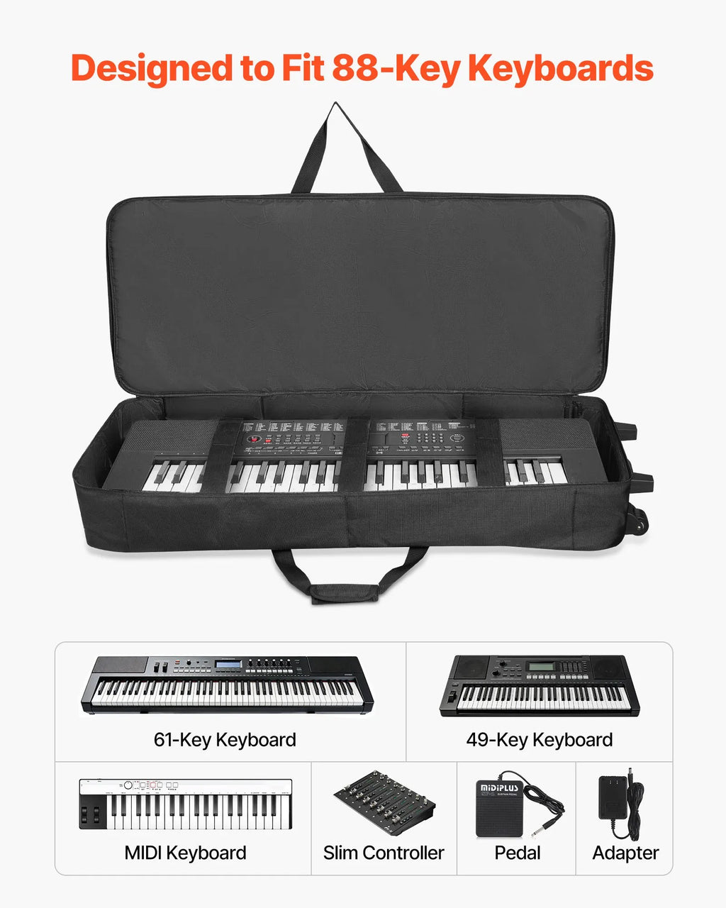 Piemērota koncertiem, kāzām, uzstāšanās reizēm vai tikšanās brīžiem ar draugiem — šī klavieru soma ar riteņiem ir piemērota dažādām situācijām.