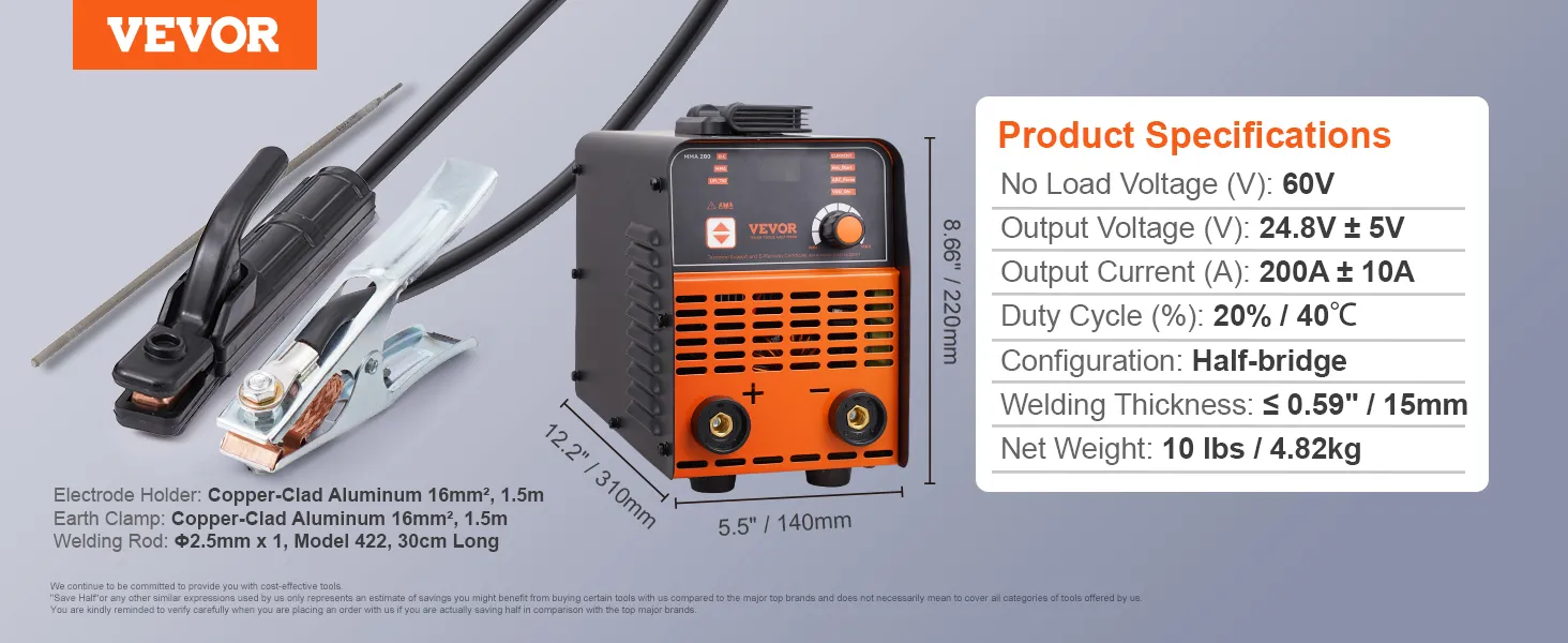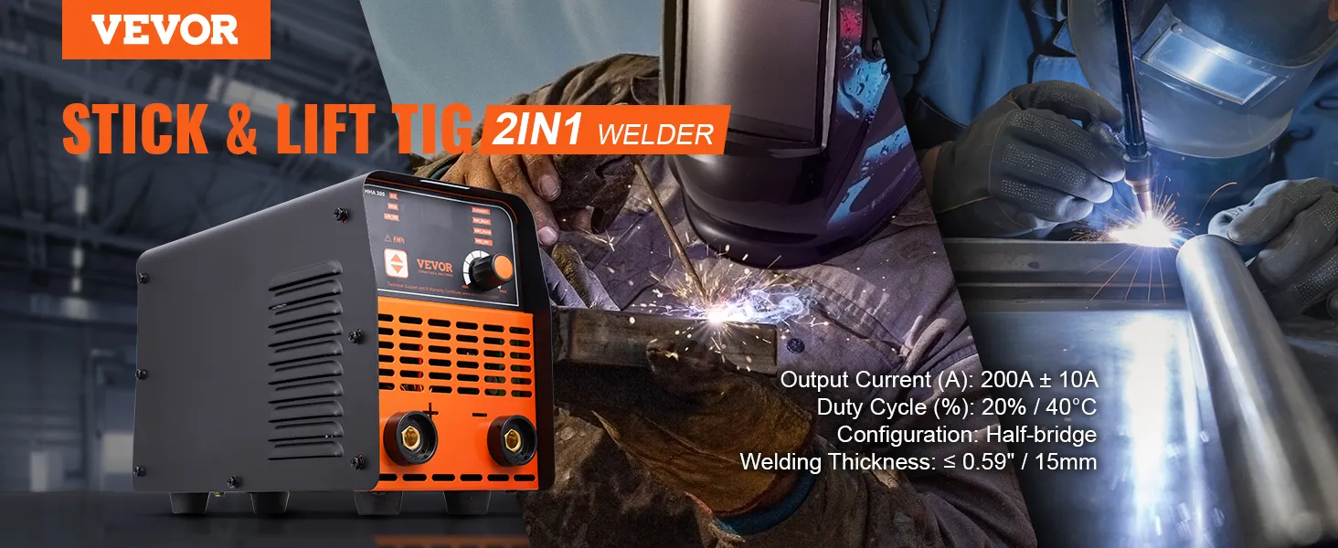 VEVOR ARC metināšanas aparāts 2-in-1, 110/220 V, 200 A, Lift TIG, karstā starta funkcija