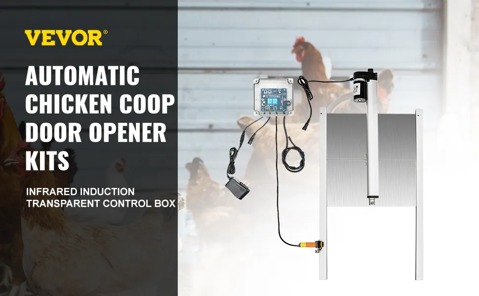 VEVOR automātiskais durvju atvēršanas komplekts putnu kūtīm, 32 × 30 cm durvis ar infrasarkano detekciju, drošībai pret vistas, pīles un zosis iespiešanos