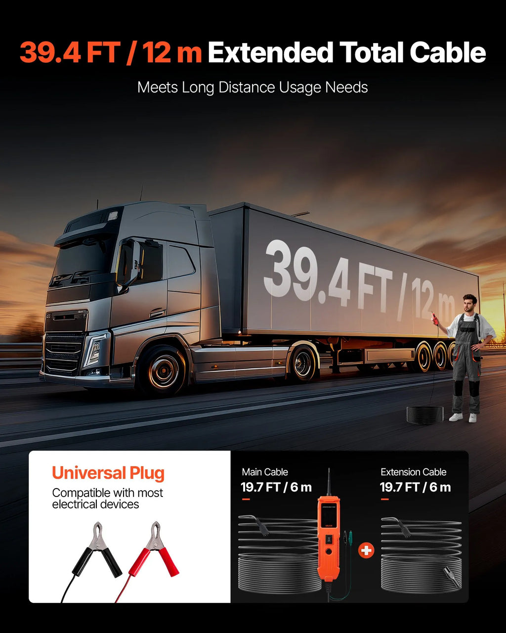 VEVOR automobiļu ķēžu testera komplekts, 8–35 V līdzstrāvas jaudas ķēžu zondes testeris ar TFT krāsu displeju un apgaismojumu, 2-in-1 automobiļu elektriskais jaudas testera zonde ar 6 m pagarinājuma kabeli