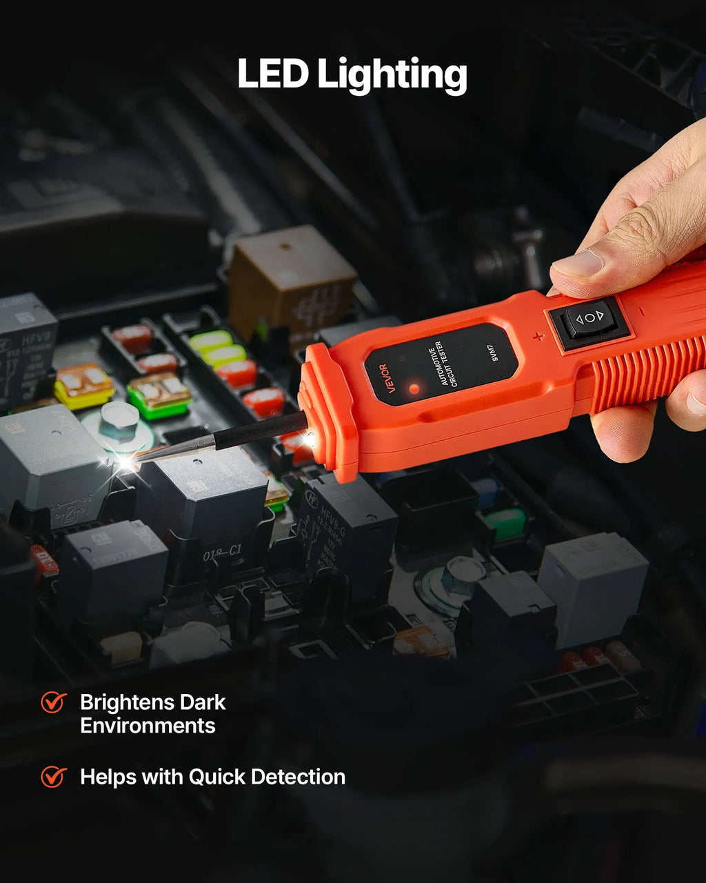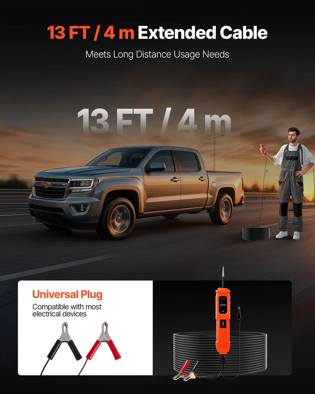 VEVOR automobiļu ķēžu testeris, 6–36 V līdzstrāvas jaudas ķēžu zondes testeris ar apgaismojumu, automobiļu jaudas testera zonde ar 4 m kabeli, ABS korpusa vadu detektors sedaniem, SUV, kemperiem un kravas automobiļiem