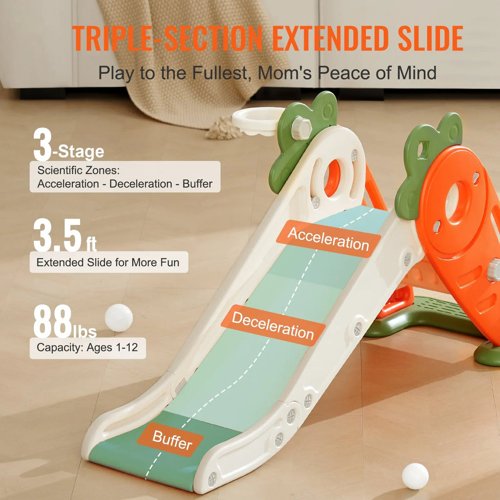 VEVOR Bērnu slīdkalniņš ar kāpnītēm un basketbola grozu, iekštelpām un ārtelpām, bērniem 1–12 gadiem, slodze līdz 40 kg, HDPE