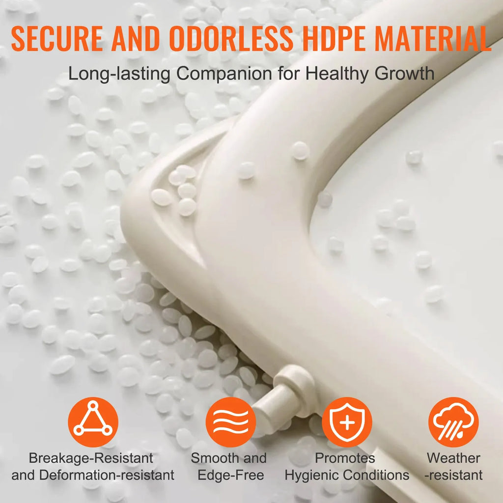 VEVOR bērnu slīdkalniņš ir izgatavots no augstas blīvuma polietilēna (HDPE), kas ir drošs, izturīgs un bez kaitīgām vielām. Materiāls ir piemērots gan lietošanai ārā, gan telpās, iztur dažādus laikapstākļus un ir viegli kopjams. Gludā virsma samazina baktēriju uzkrāšanos, nodrošinot higiēnisku rotaļu vidi.