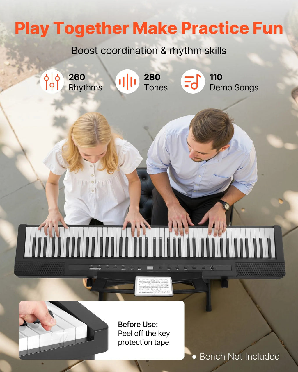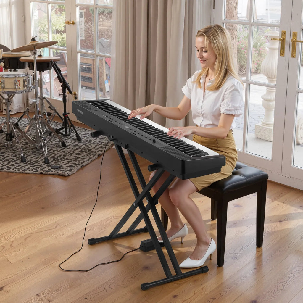 Salīdzinājumā ar akustiskajām klavierēm mūsu 88 taustiņu pilnsvara klaviatūra ir vieglāka un vieglāk pārvietojama, ļaujot to novietot jebkurā vēlamajā vietā. Tā sniedz iespēju spēlēt kopā ar draugiem vai tuviniekiem un ērti baudīt muzikālos brīžus.