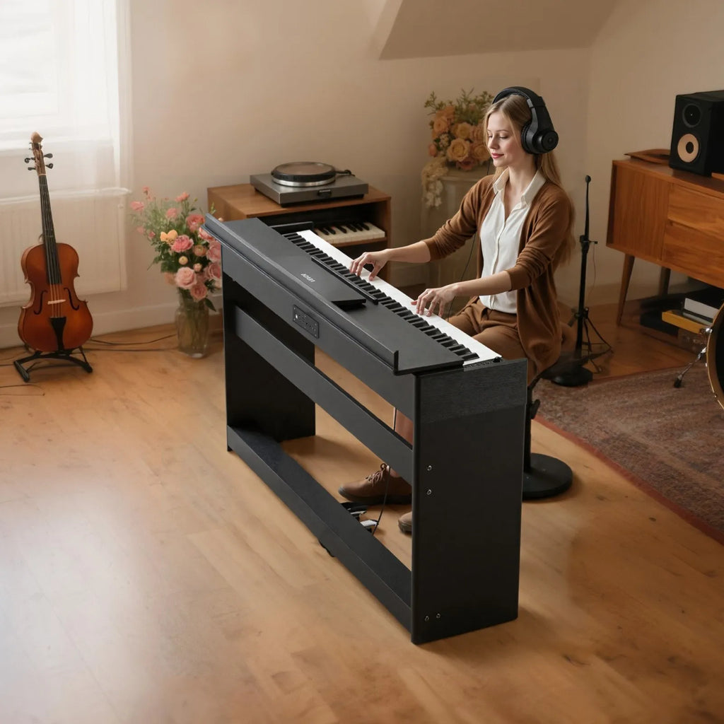 Pārvērt jebkuru telpu par savu personīgo mūzikas oāzi. Bagātīgs skanējums atdzīvina katru noti. Neatkarīgi no tā, vai vingrinies viens vai spēlē kopā ar ģimeni, šīs 88 pilnsvara digitālās klavieres rada ideālu vidi radošumam un kopīgai muzicēšanai.