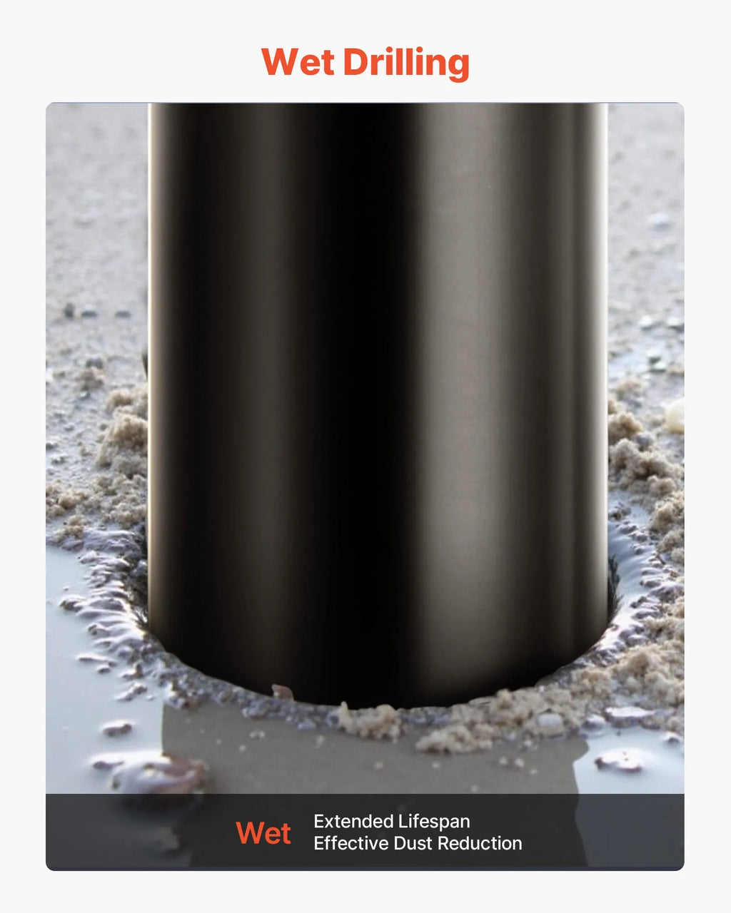 Mitrā urbšana: Šis dimanta kroņurbis ir paredzēts mitrās griešanas apstākļiem. Tas samazina siltuma uzkrāšanos, kas var ietekmēt veiktspēju, pagarina kalpošanas laiku, samazina berzi un palielina urbšanas ātrumu efektīvākai darbībai.