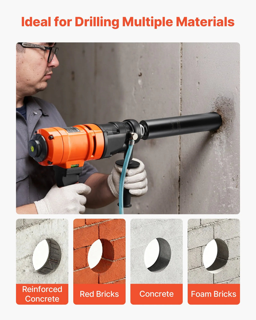 Plašs pielietojums: Piemērots urbšanai dzelzsbetonā, sarkanajos ķieģeļos, betonā un gāzbetonā. Plaši izmantots kondicionēšanas sistēmu uzstādīšanā, santehnikā, kāpņu margās, autoceļos, lidostās un dažādos būvniecības darbos.