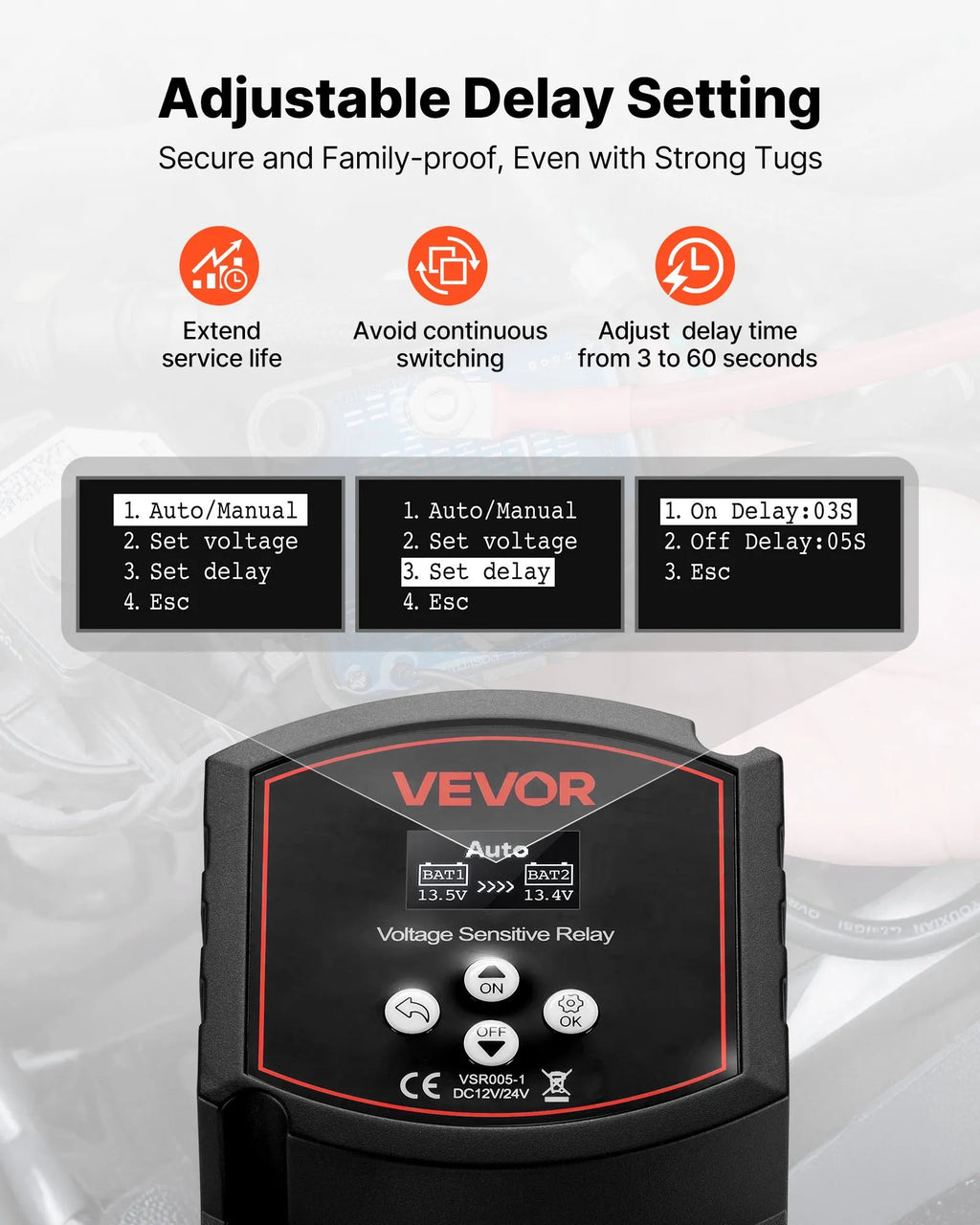 Visaptveroša aizsardzība: Aprīkots ar aizsardzību pret pārspriegumu un zemspriegumu, viedais divu akumulatoru izolators ir izturīgs, triecienizturīgs un putekļu necaurlaidīgs. Nodrošina stabilu un uzticamu elektroapgādi kemperiem, kravas automobiļiem, laivām vai autonomām elektroapgādes sistēmām.