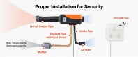 Pārliecinieties, ka gaisa ieplūdes caurule un trokšņu slāpētājs ir novietoti horizontāli bez pārmērīgiem liekumiem un atdalīti no izplūdes caurules, lai nepieļautu gaisa piesārņojumu.