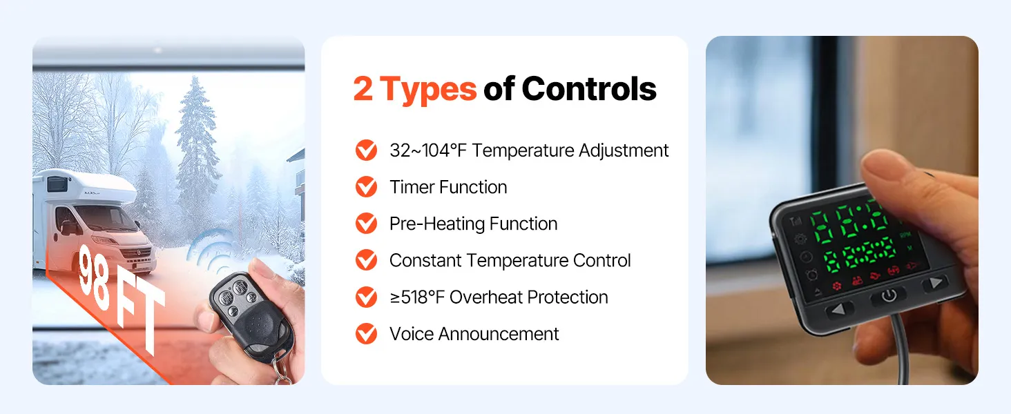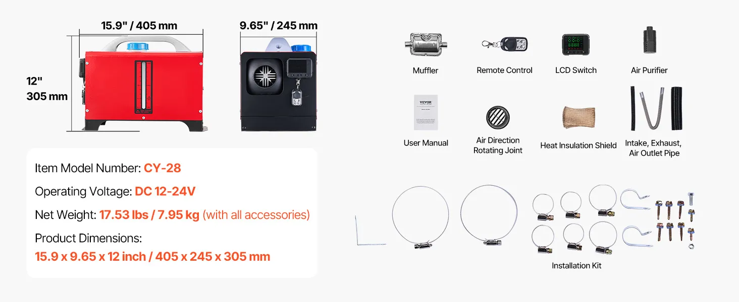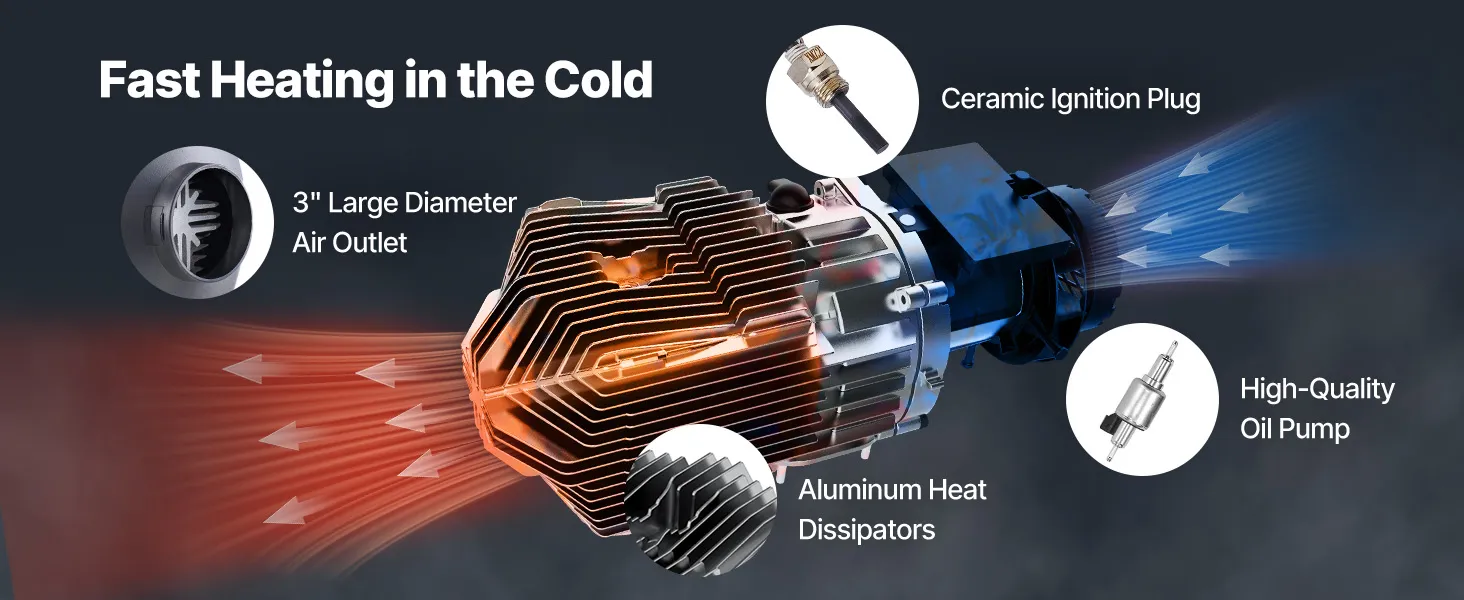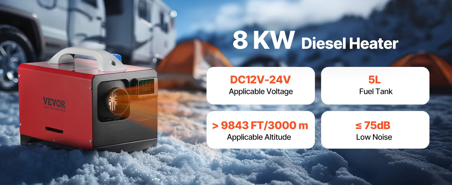 Neatkarīgi no tā, kurp dodaties, VEVOR dīzeļdegvielas sildītājs nodrošina siltumu un komfortu jebkuros laikapstākļos. Tas darbojas efektīvi līdz 3000 m augstumā, padarot to ideāli piemērotu kalnu ceļojumiem vai darbam aukstā vidē.