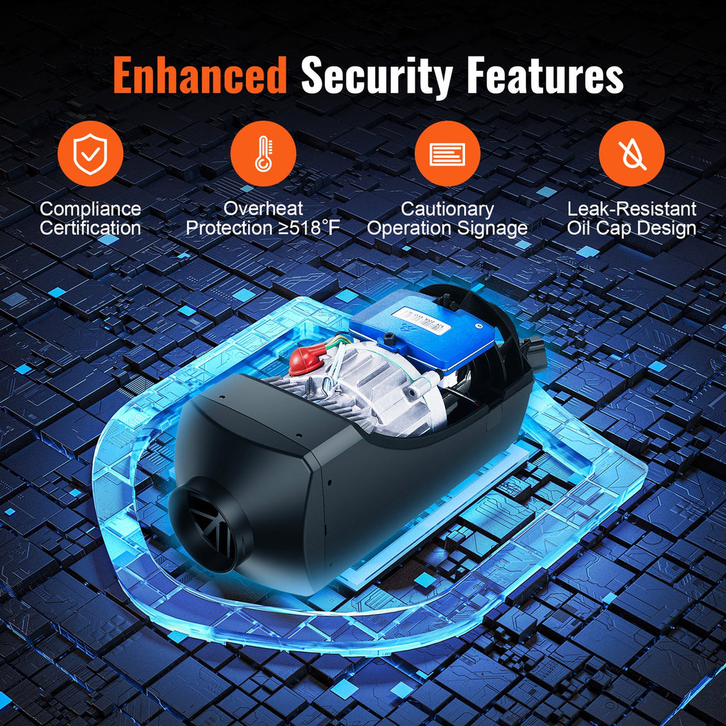 VEVOR dīzeļdegvielas gaisa sildītājs ar Bluetooth lietotnes vadību, 12 V 2 kW dīzeļsildītājs ar automātisku augstuma pielāgošanu, tālvadības pulti un LCD displeju, dīzeļdegvielas stāvvietas sildītājs kemperiem, treileriem, furgoniem un laivām