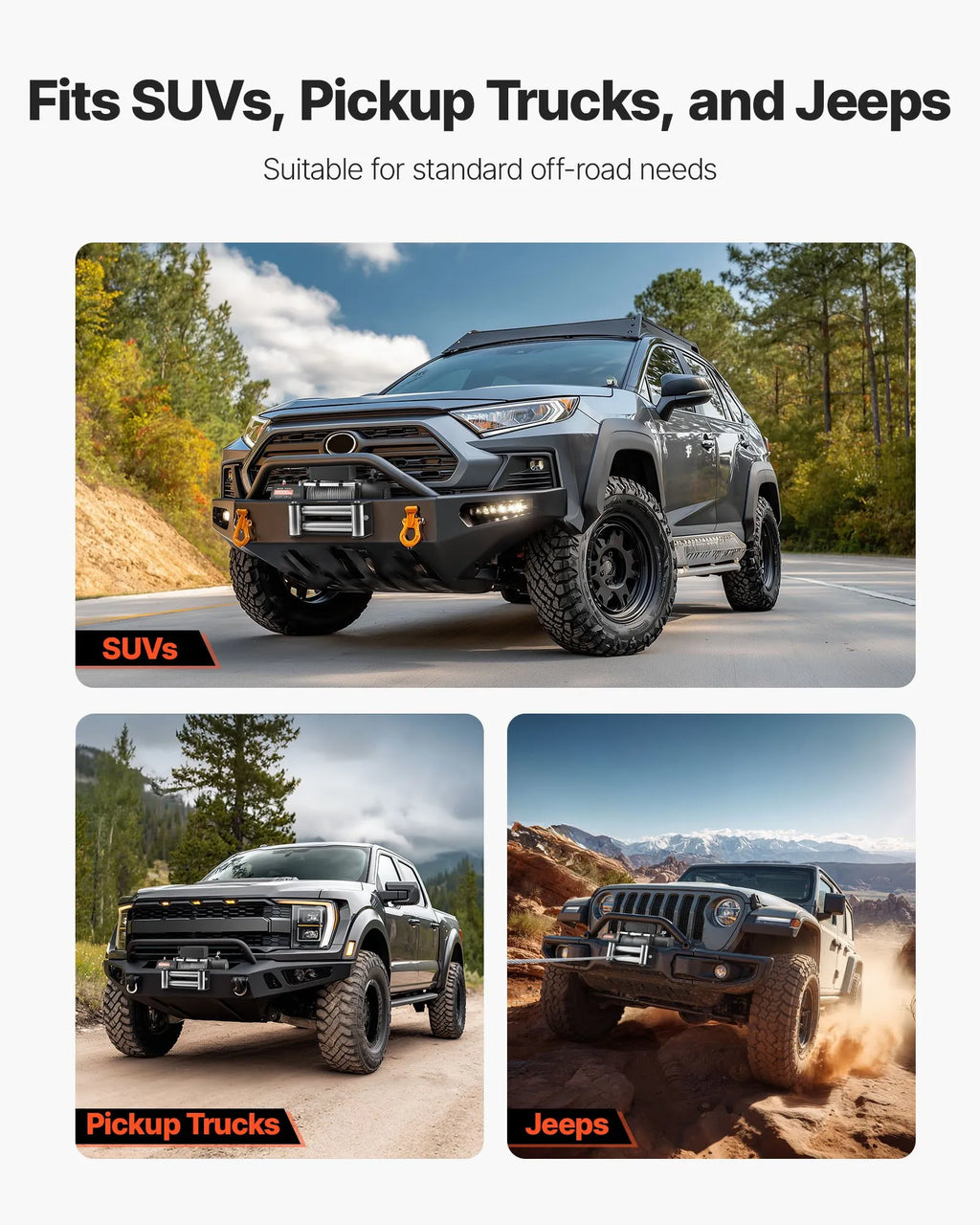 VEVOR elektriskā vinča, 5 400 kg vilkšanas jauda, 12 V līdzstrāvas kravas auto vinča ar Φ9,1 mm × 24 m tērauda trosi, bezvadu un vadu tālvadība, IP55 ūdensizturība SUV, Jeep, piekabju, laivu un bezceļu transportlīdzekļu vilkšanai