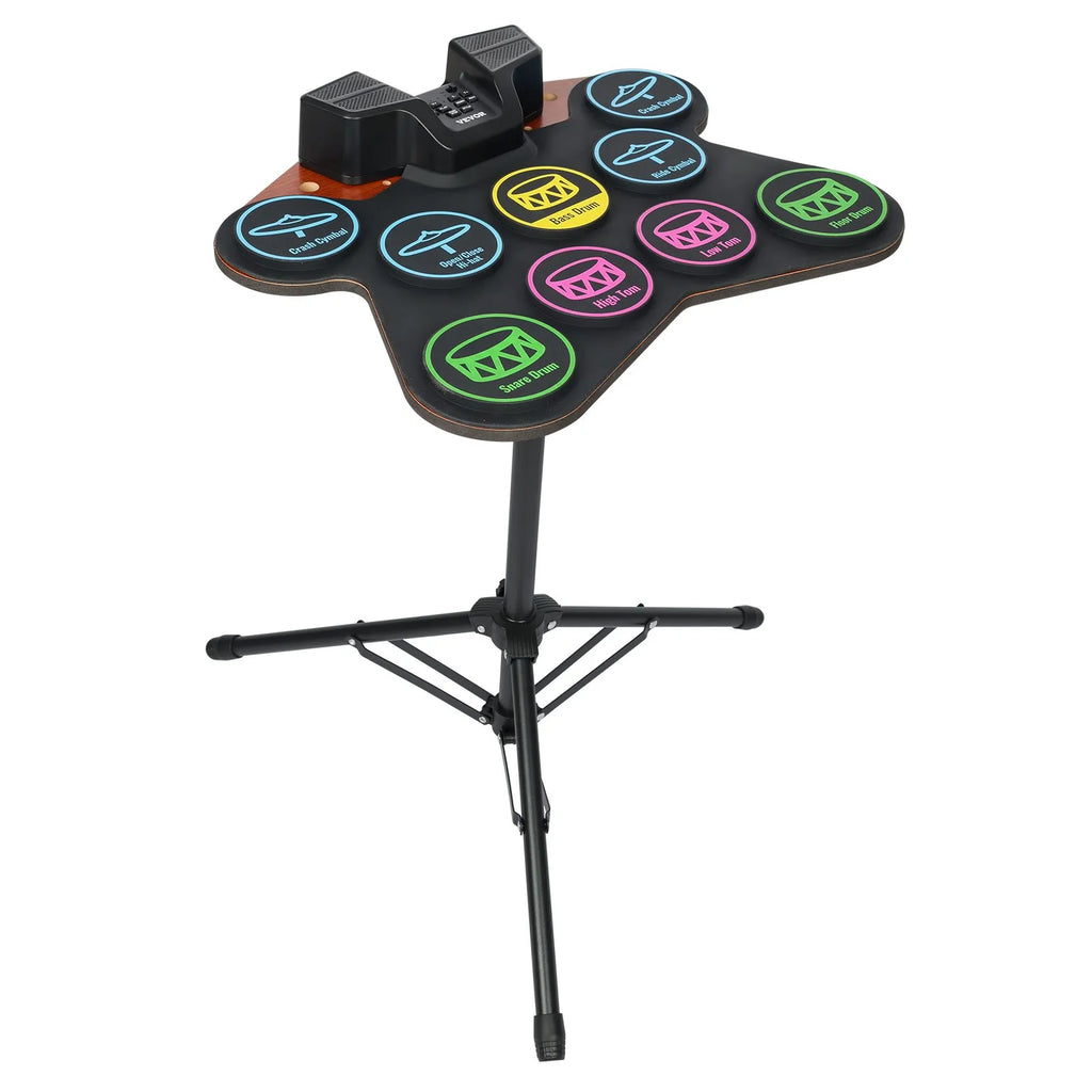 VEVOR elektroniskā bungu komplekts ar 9 spilventiņiem, statīvu, dubultajiem pedāļiem, izgaismotiem vicinātājiem un iebūvētiem skaļruņiem, bērniem no 5 gadu vecuma