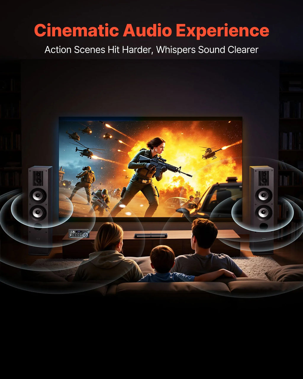 5.25-Inch Woofer Mūsu grīdas tipa tornis ir aprīkots ar diviem 13,3 cm zemfrekvences skaļruņiem, kas nodrošina stingru, dinamisku un precīzu basu.