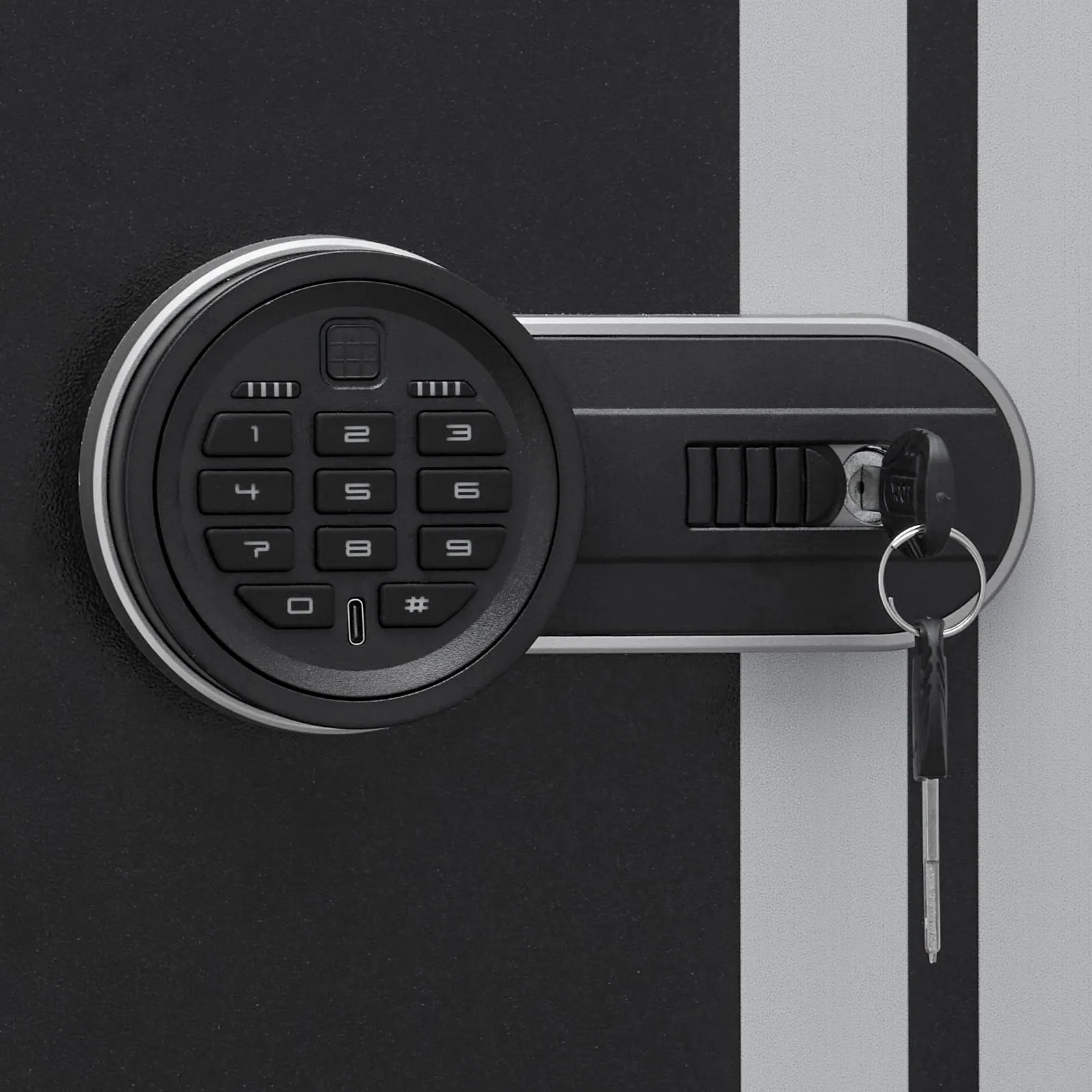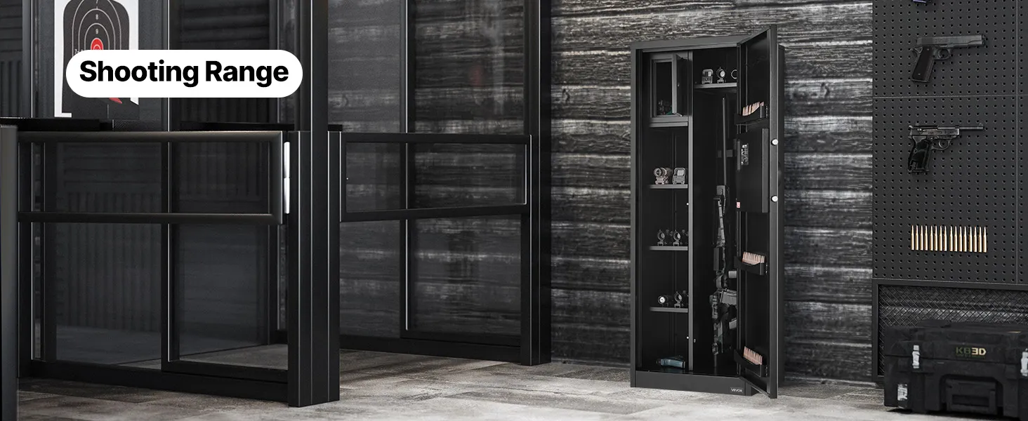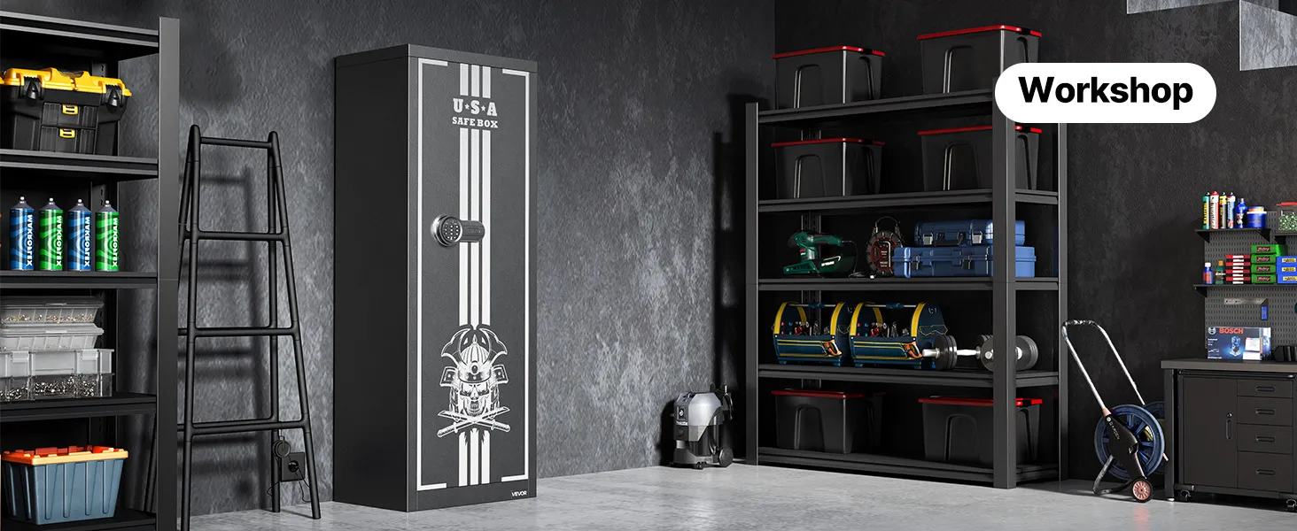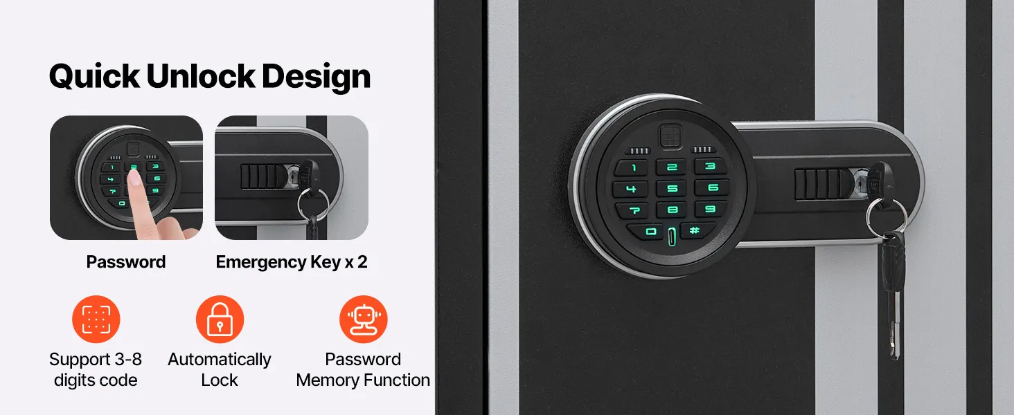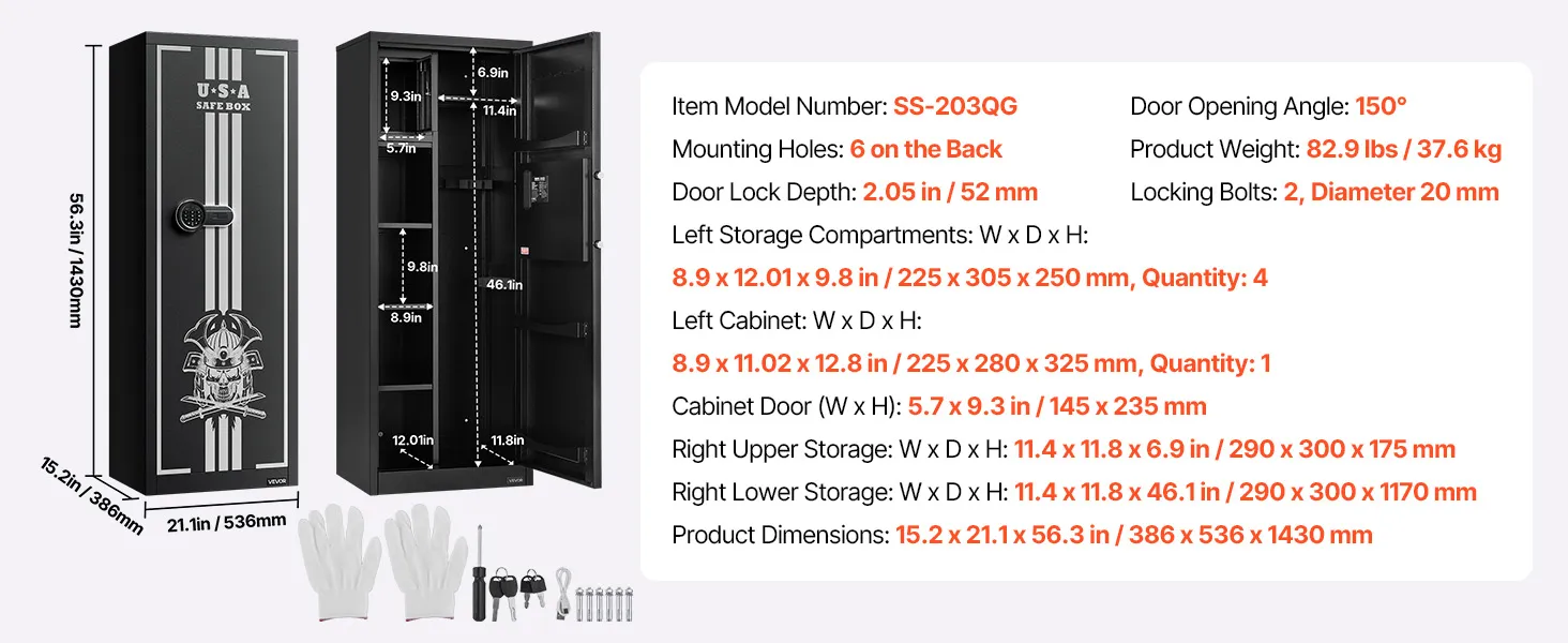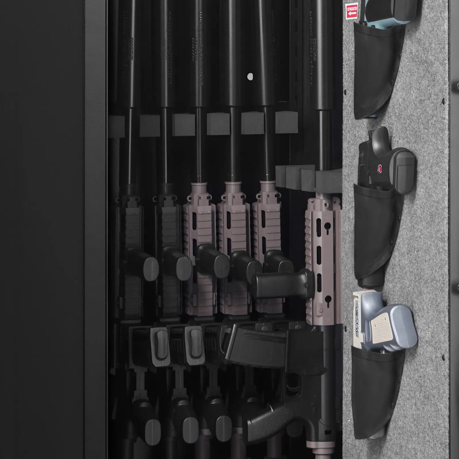 VEVOR ieroču seifs 4 šautenēm, garo ieroču un pistoles skapis, ātrās piekļuves šauteņu seifs ar 3 patronu nodalījumiem un 2 regulējamām turētāju rindām, liels digitālais seifs ar atslēgas un paroles slēdzeni