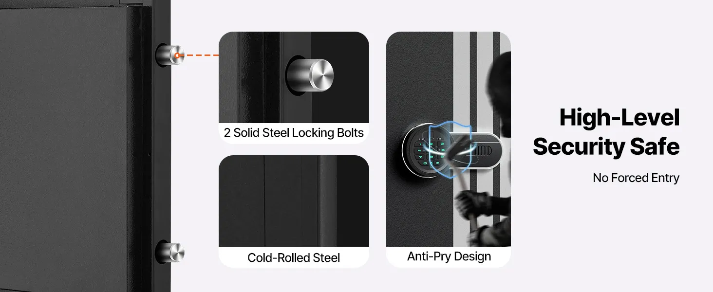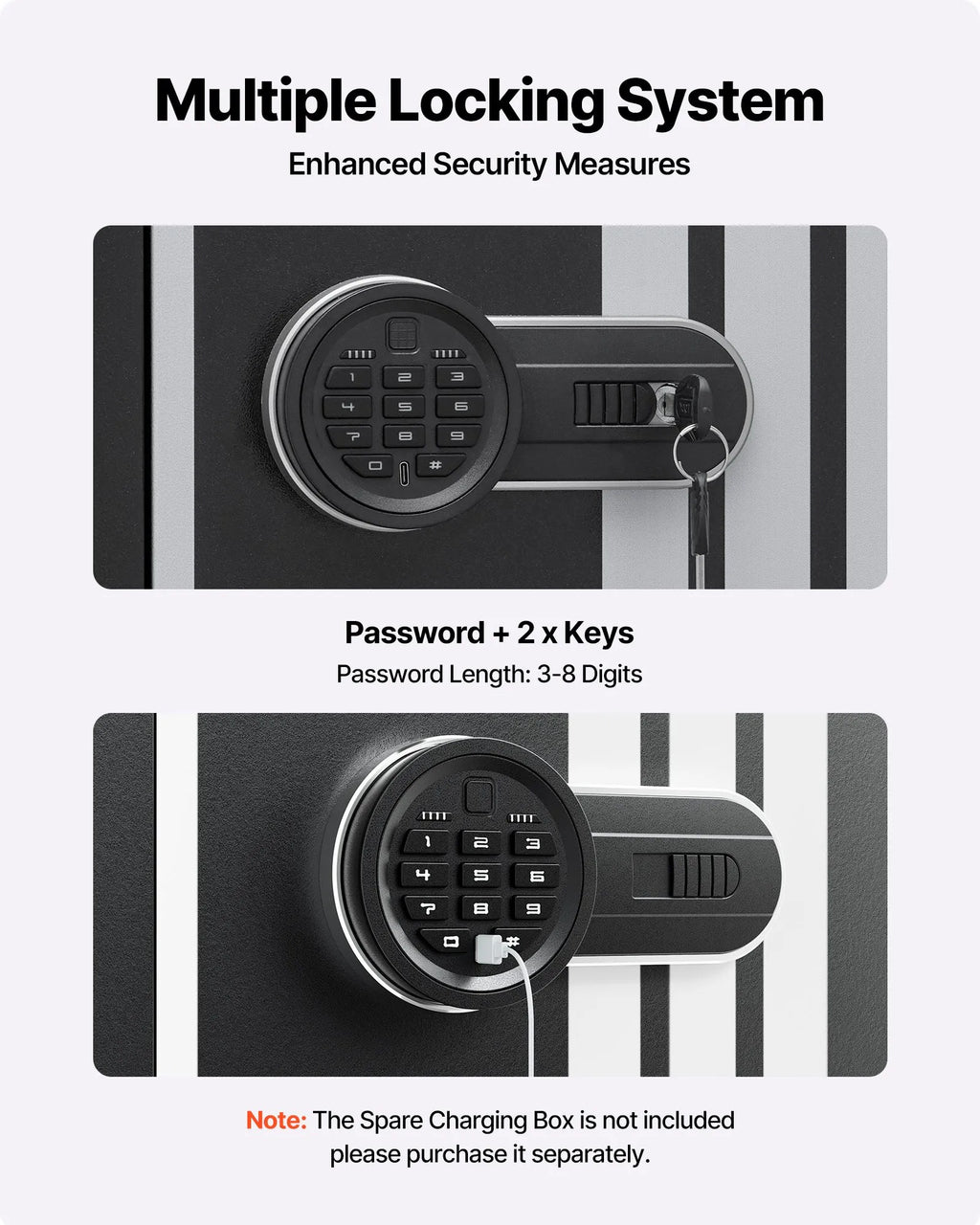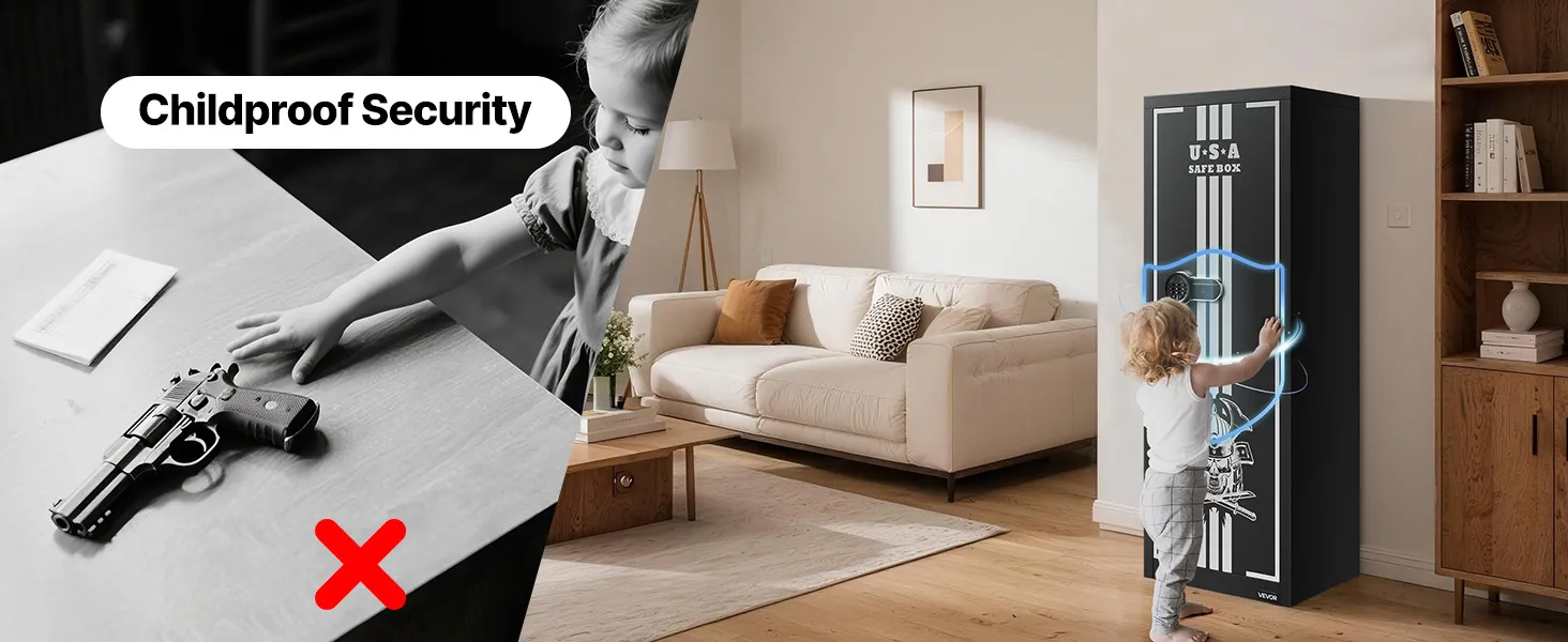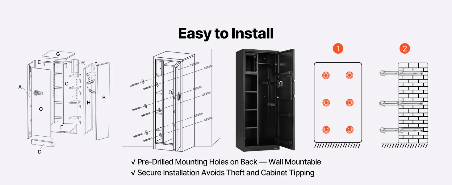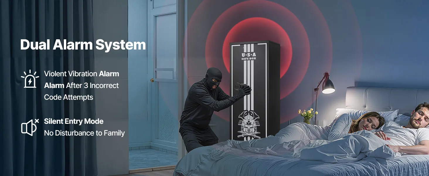 VEVOR ieroču seifs 4 šautenēm, garo ieroču un pistoles skapis, ātrās piekļuves šauteņu seifs ar 3 patronu nodalījumiem un 2 regulējamām turētāju rindām, liels digitālais seifs ar atslēgas un paroles slēdzeni