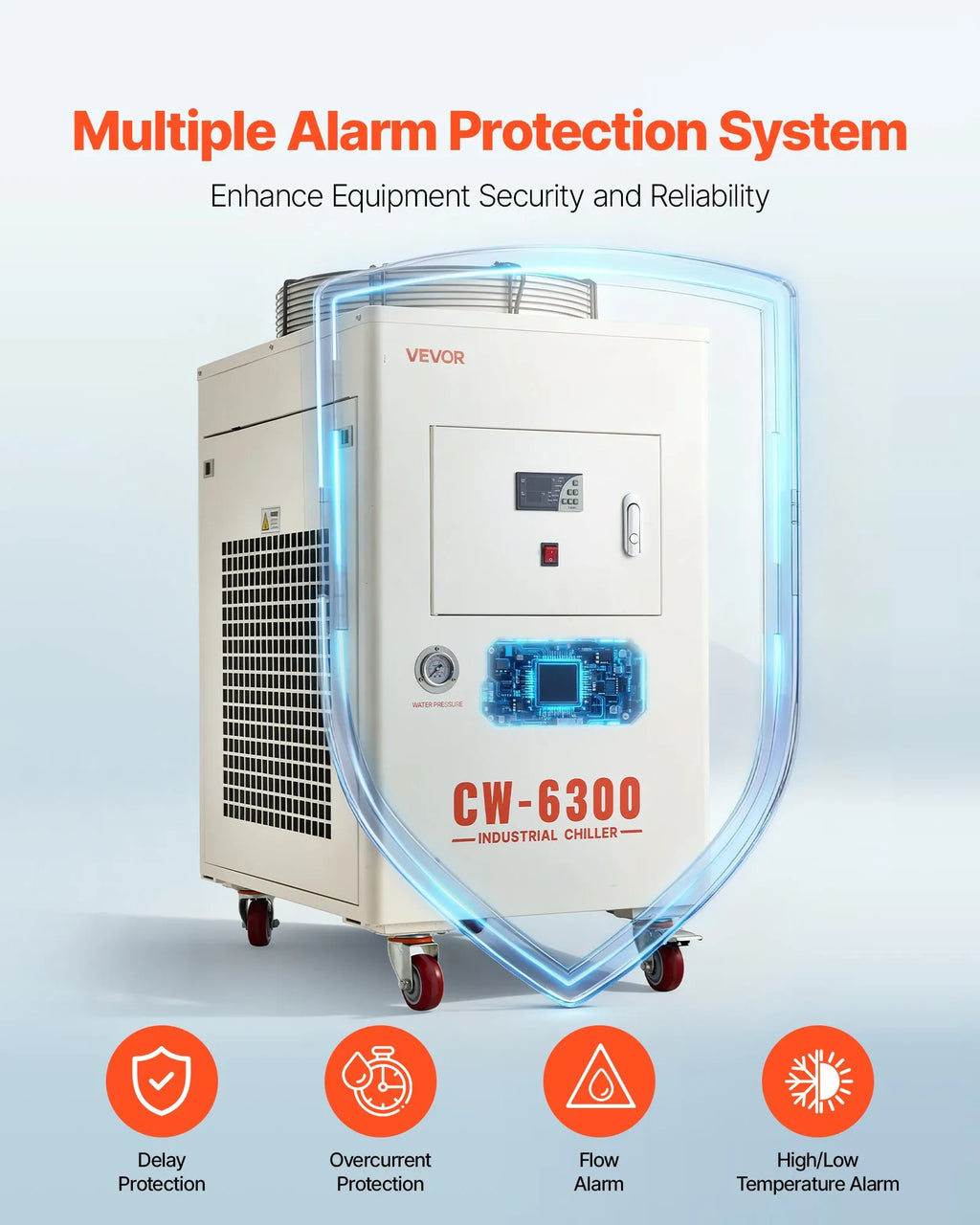 Vairākas trauksmes funkcijas: Industriālais lāzera dzesētājs nepārtraukti uzrauga darbību, izmantojot sensorus, indikatora gaismas un iebūvētās trauksmes. Dažādi brīdinājumi palīdz savlaicīgi konstatēt novirzes, nodrošinot drošu un stabilu dzesēšanu darba laikā.