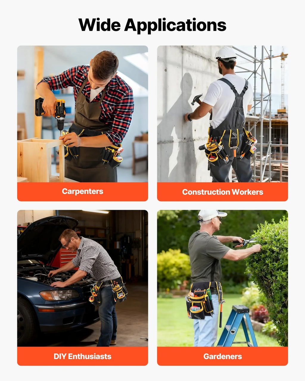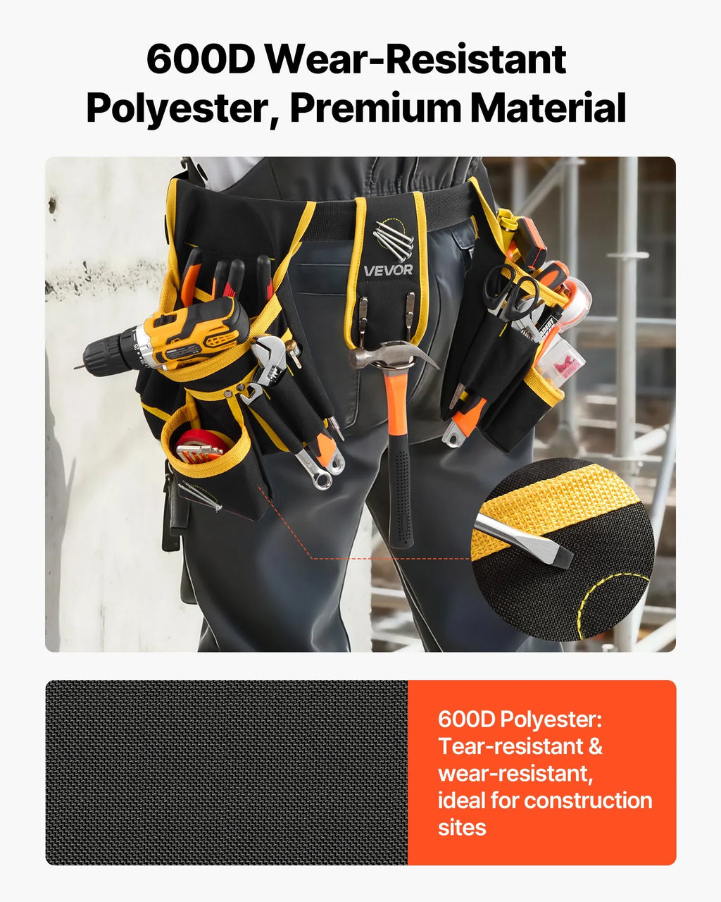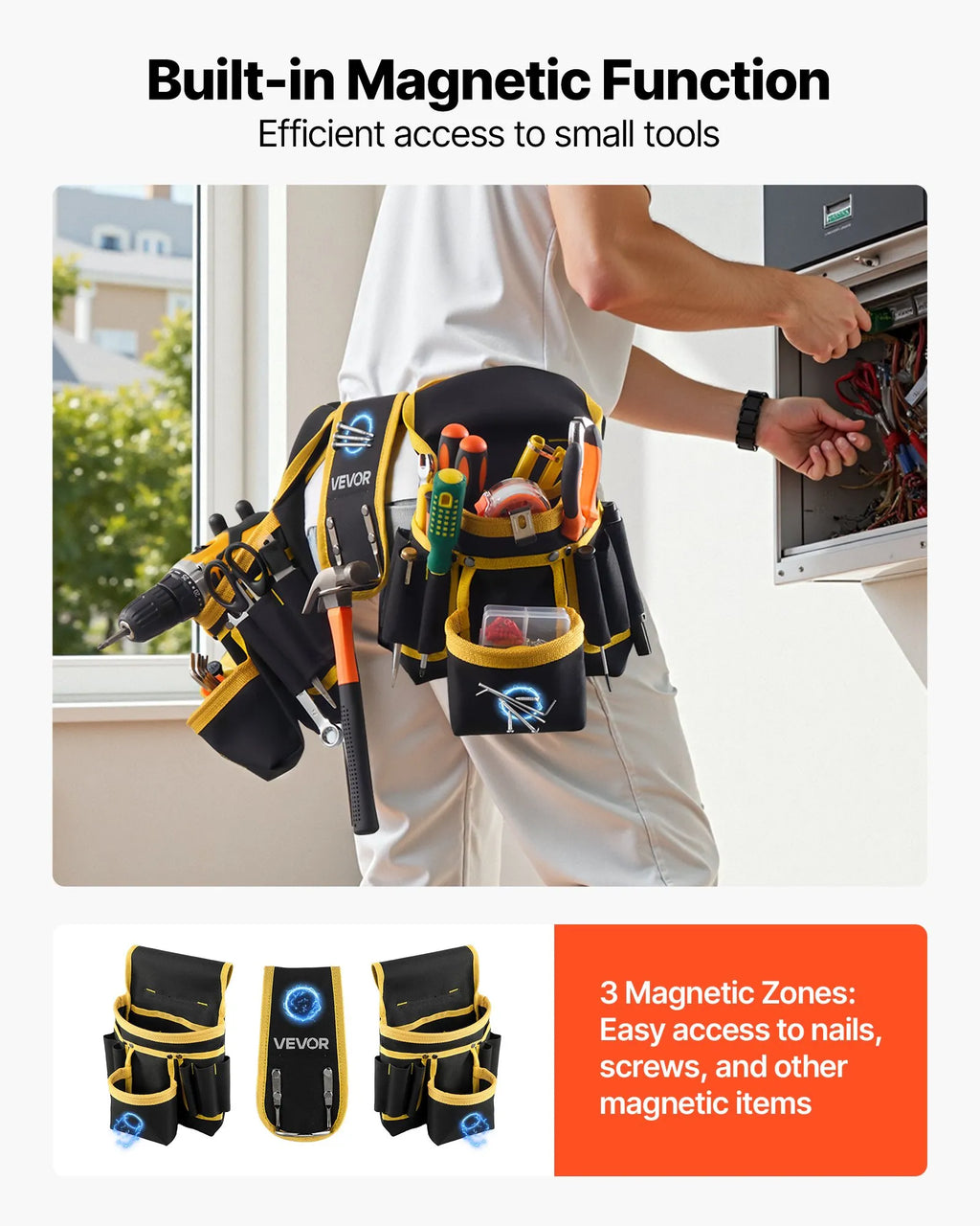 VEVOR instrumentu josta ar magnētisku instrumentu somu, 28 kabatas, pastiprināta regulējama darba josta ar noņemamu somu elektriķiem, galdniekiem un būvniecībai, vidukļa regulācija 78,7–121,9 cm