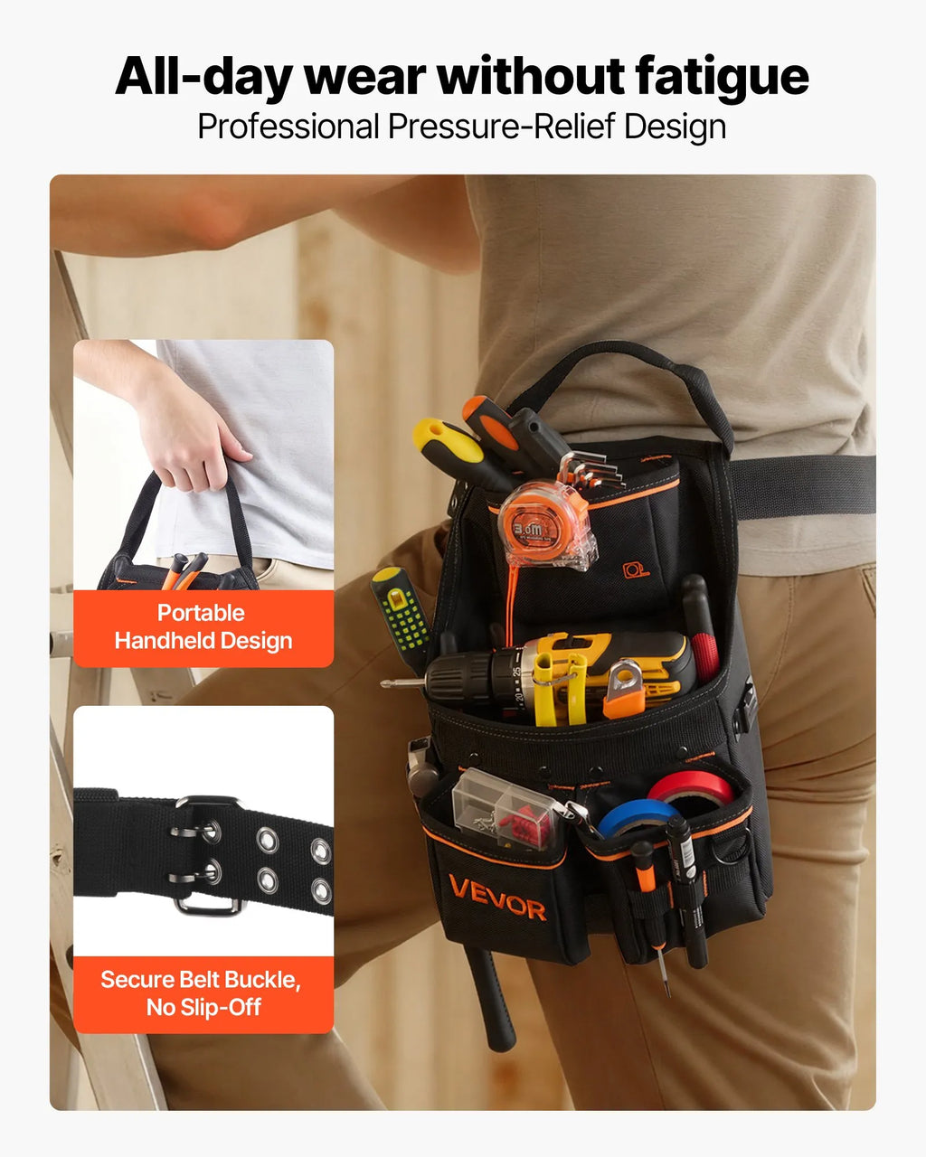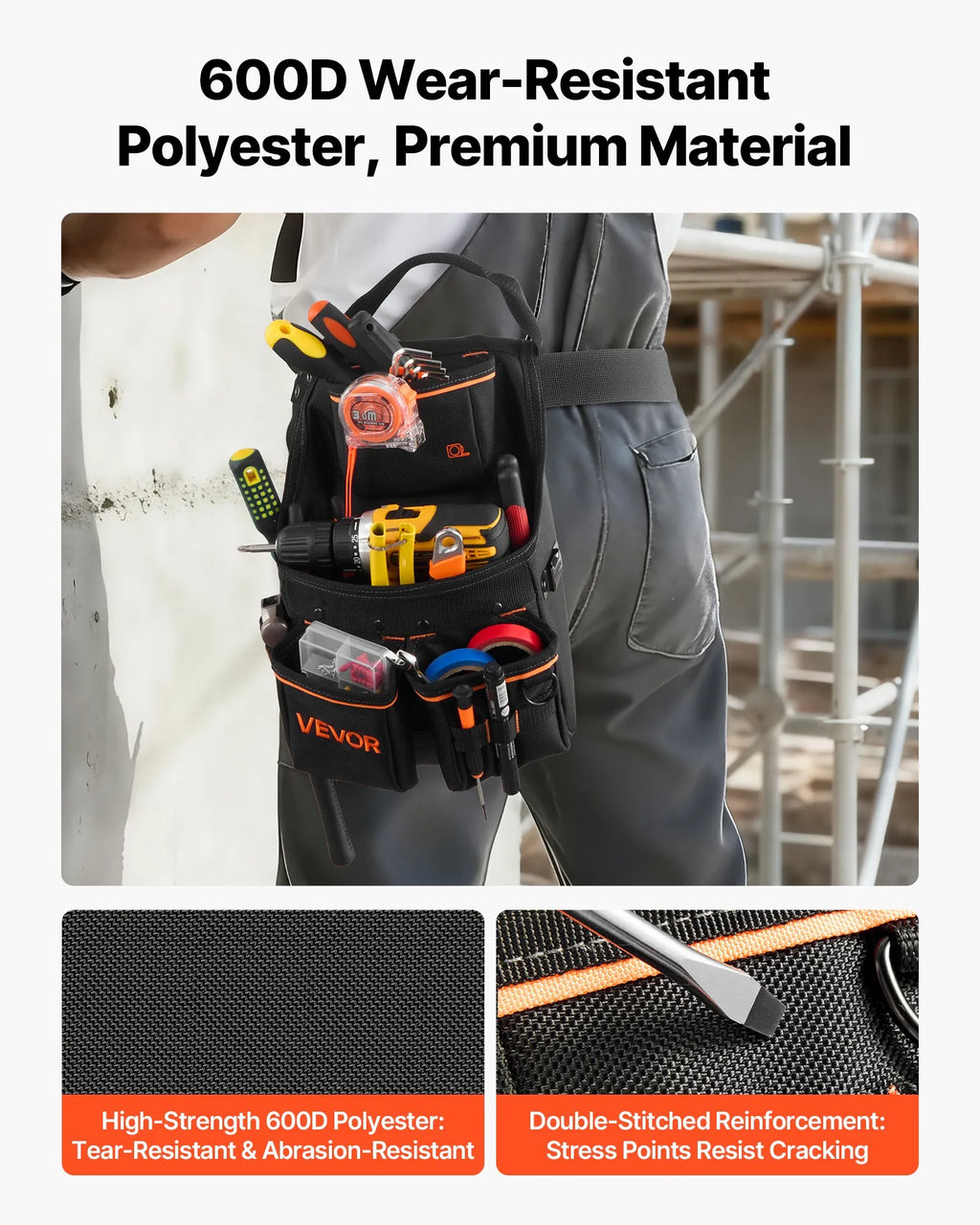 VEVOR instrumentu soma ar jostu, 14 kabatas, profesionāla instrumentu jostas soma vīriešiem, izturīga noņemama un regulējama darba soma elektriķiem, galdniekiem un būvniecībai, regulējams viduklis 83–127 cm