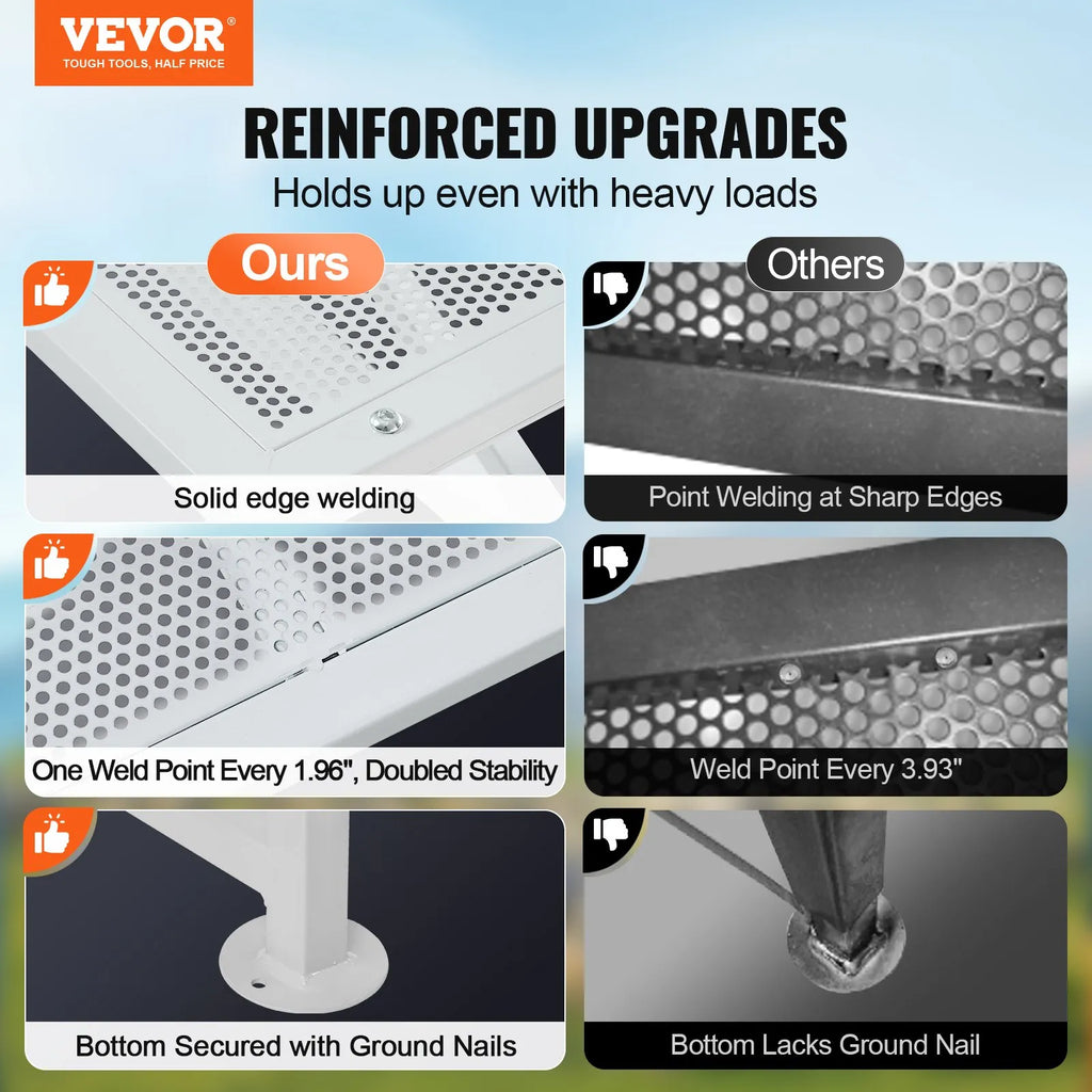 VEVOR kazu un aitu stends ir izturīgs un ilgmūžīgs risinājums dažādu dzīvnieku kopšanai. Plašā 120 × 58 cm platforma ar nestspēju līdz 226 kg piemērota kazām, aitām un teļiem. Gludās malas nodrošina drošību, bet aizsargpārklājums pasargā konstrukciju no korozijas, ļaujot to izmantot arī nelabvēlīgos laikapstākļos. Stends saglabā stabilitāti pat intensīvas slodzes laikā un ir piemērots ikdienas darbam saimniecībā ar lielākiem dzīvniekiem.
