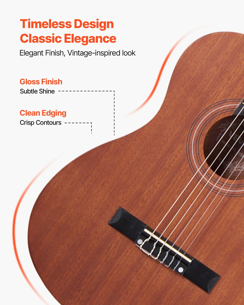 Veidota iesācējiem un jaunajiem mūziķiem, šī klasiskā ģitāra apvieno roku darba kvalitāti ar praktiskiem risinājumiem. Cietā koka aizmugure, neilona stīgas un skaņotājs nodrošina ērtu spēli un vienkāršu skaņošanu. Komplektā iekļautā soma un piederumi sniedz visu nepieciešamo muzikālās ceļa sākšanai.