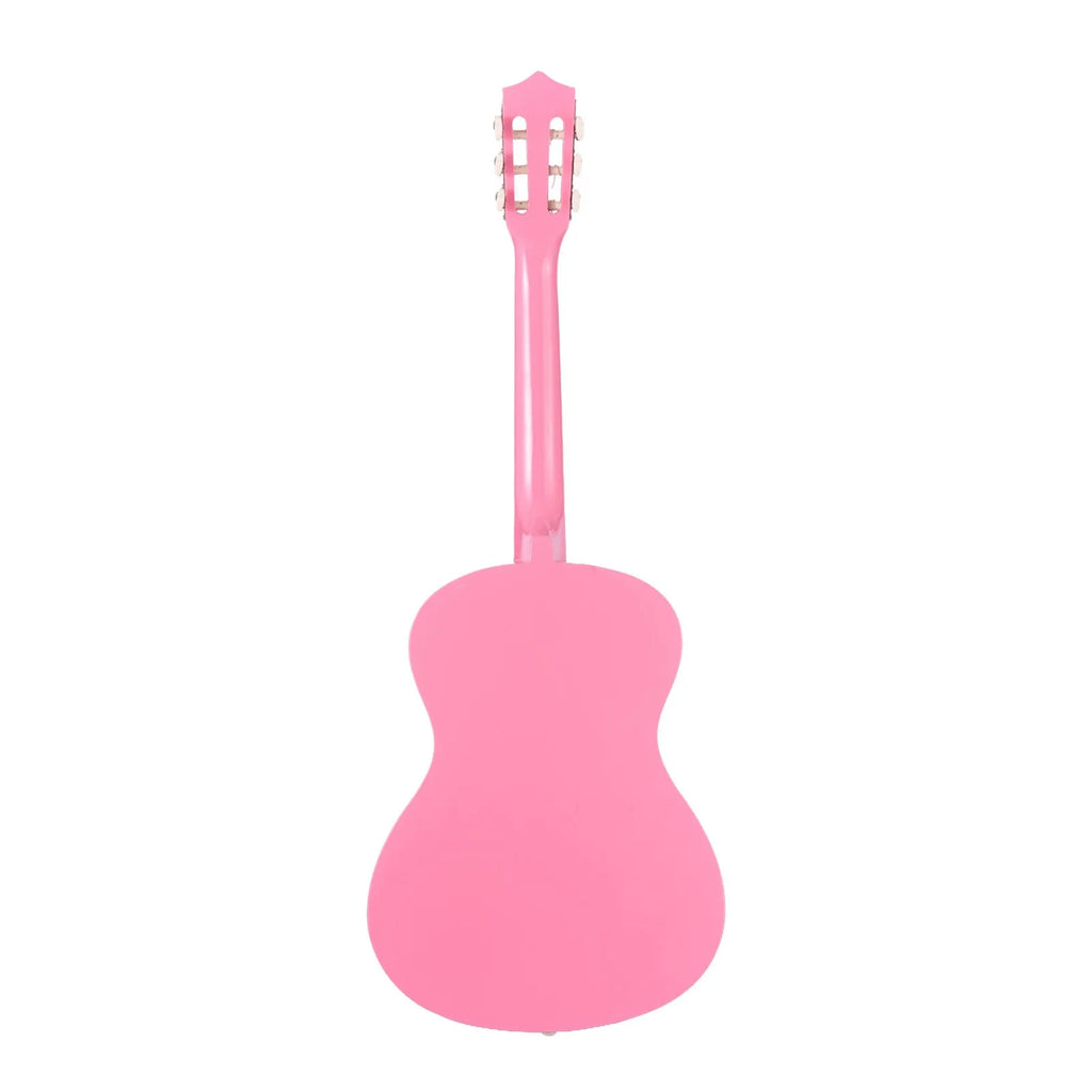 VEVOR klasiskā ģitāra 960 mm, basskoka modelis ar neilona stīgām, iesācēju komplekts ar somu, siksnu, skaņotāju, stīgām, mediatoriem un kapo, rozā krāsa