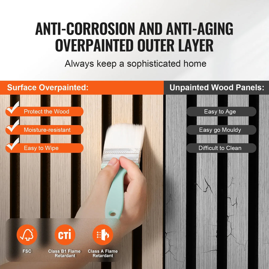 VEVOR koka līstu akustiskie paneļi, 200 × 2400 mm, MDF akcenta koka sienas paneļi modernam interjera dekoram, mākslīgā koka sienas paneļi trokšņu samazināšanai, sudrabkoka krāsā