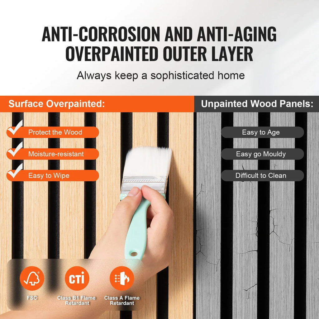 VEVOR koka līstu akustiskie paneļi, 200 × 2400 mm, MDF akcenta sienas paneļi modernam interjera dizainam, mākslīgā koka sienas paneļi trokšņu samazināšanai, gaišā ozola krāsā