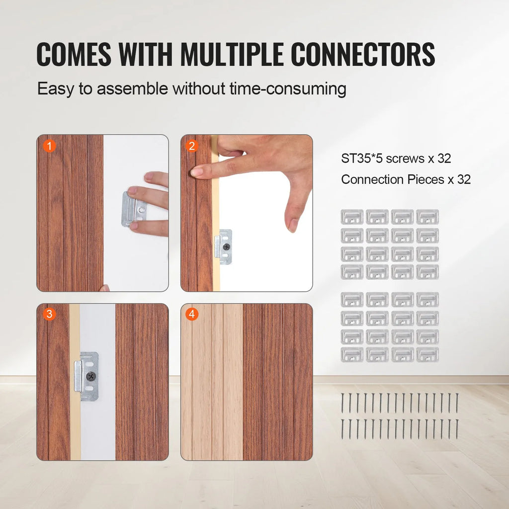 Katrs panelis ir 2450 × 166 mm izmērā un kopējais pārklājuma laukums ir aptuveni 3,23 m², padarot tos ideāli piemērotus lielām telpām un nodrošinot vienmērīgu integrāciju jūsu interjera dizainā.