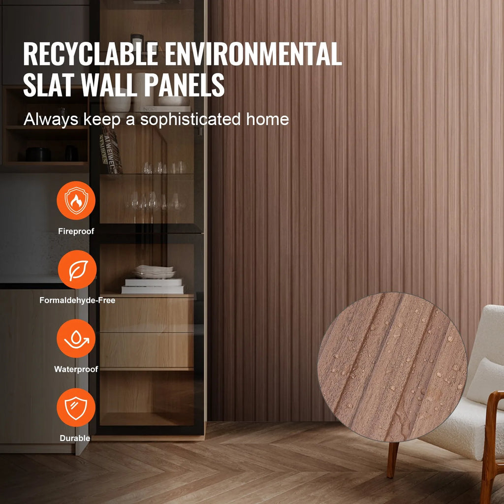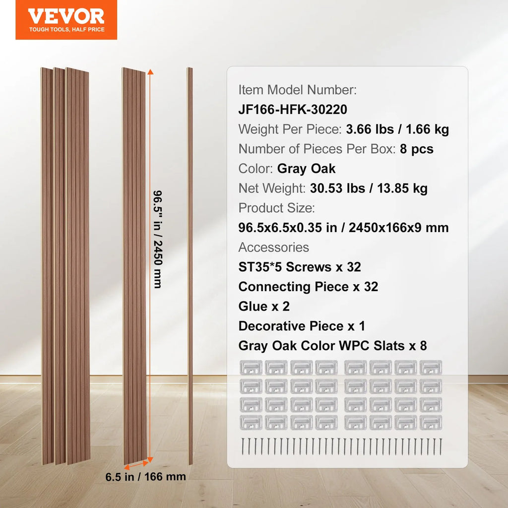 VEVOR koka līstu akustiskie paneļi, 8 gab., 2440 × 152 mm, WPC akcenta sienas paneļi modernam interjeram, mākslīgā koka sienas paneļi stilīgam dekoram un trokšņu samazināšanai, pelēkā ozola krāsā