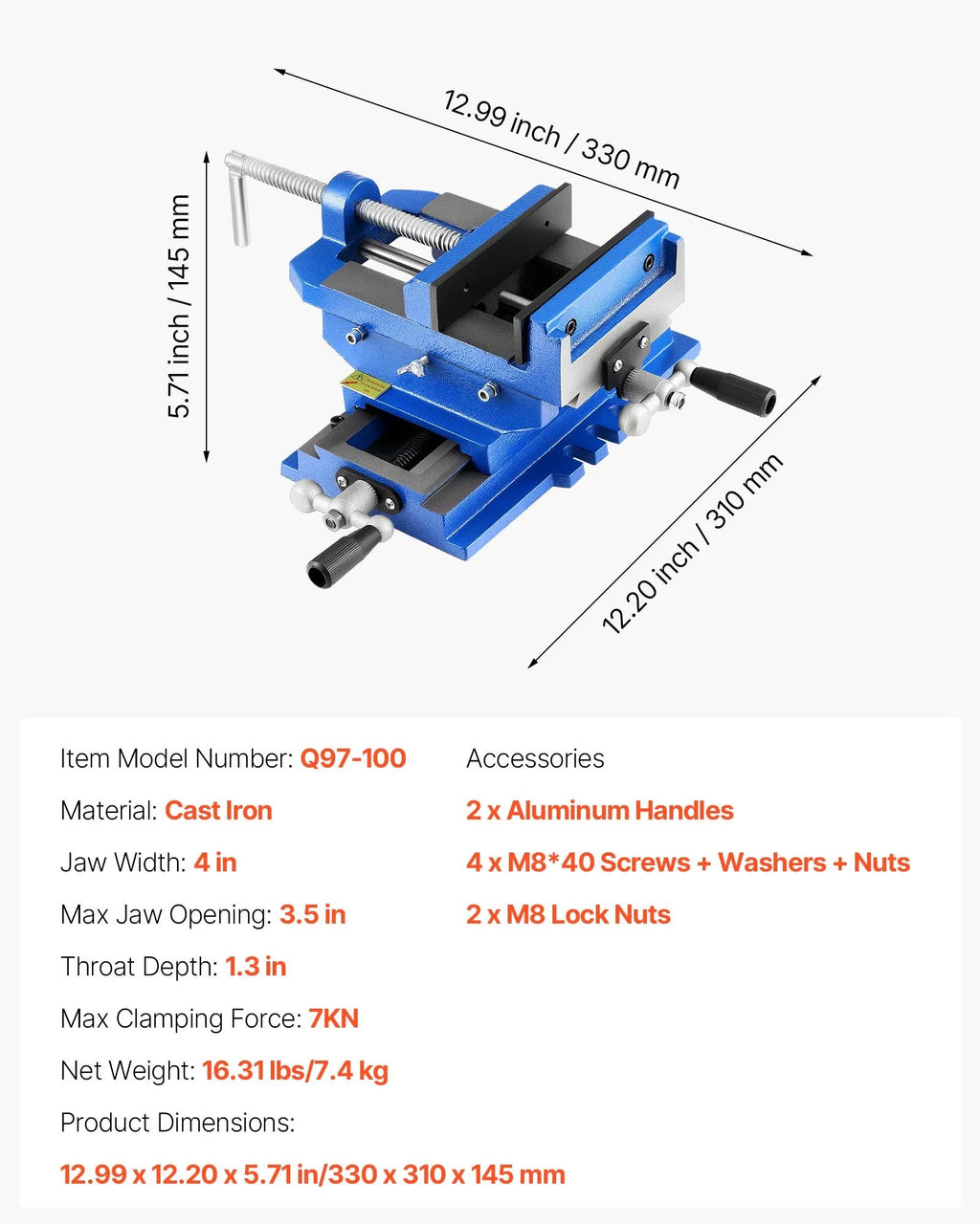 Izgatavotas no augstas izturības čuguna, šīs krusteniskās padeves urbjmašīnas skrūvspīles nodrošina precīzu X/Y divasu regulēšanu. Divi rokturi ļauj vienmērīgi pārvietot detaļu horizontālā un vertikālā virzienā. Piemērotas frēzmašīnām, urbjmašīnām un citām iekārtām.