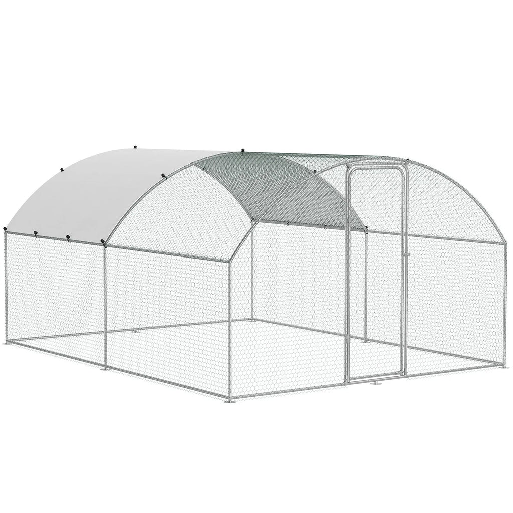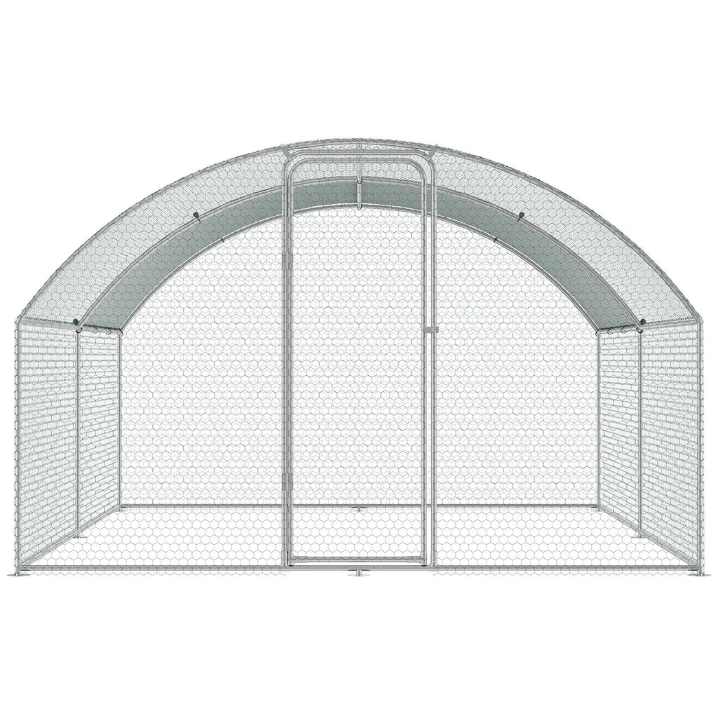 VEVOR liela metāla vistas kūts ar ieejamu pastaigu zonu un ūdensizturīgu pārsegu, 3 × 3,93 × 2 m voljers ar dooma tipa jumtu, drošības slēdža durvīm — ideāli piemērota saimniecībai, pagalmam, pīlēm, trušiem un citām mājdzīvnieku turēšanai