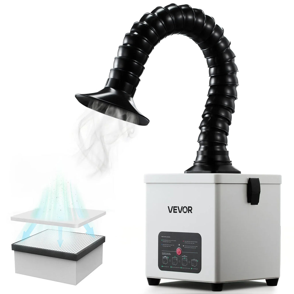 VEVOR lodēšanas dūmu nosūcējs, 3 pakāpju filtrācijas lodēšanas dūmu savācējs ar jaudīgu 180 m³/h gaisa plūsmu un 3 līmeņu ātruma regulēšanu, kompakts galda tipa bezsuku dūmu ekstraktors lodēšanai un DIY metināšanai