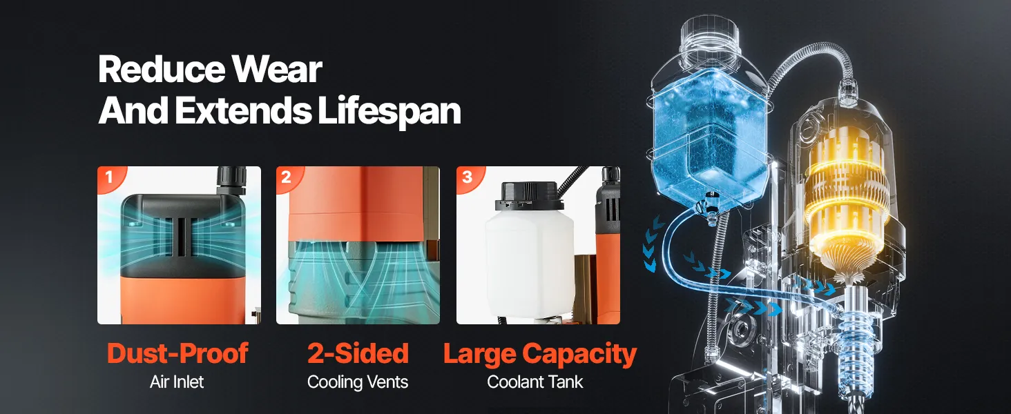Uzticamas detaļas: Izturīgs metāla korpuss, augstas precizitātes vārpsta, efektīva dzesēšanas sistēma un pārslodzes izslēgšanās funkcija nodrošina precizitāti, drošību un stabilitāti ilgstošas lietošanas laikā. Magnētiskā urbjmašīna droši darbojas arī lielas slodzes apstākļos.