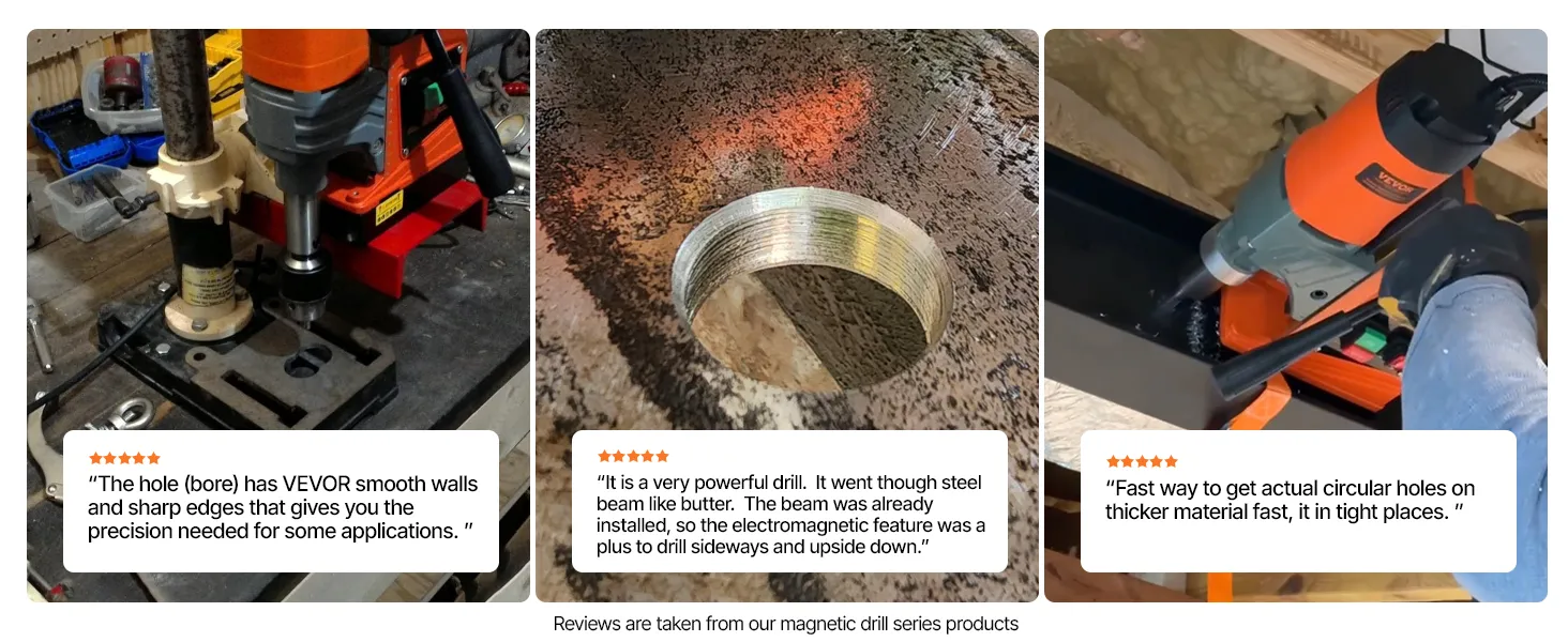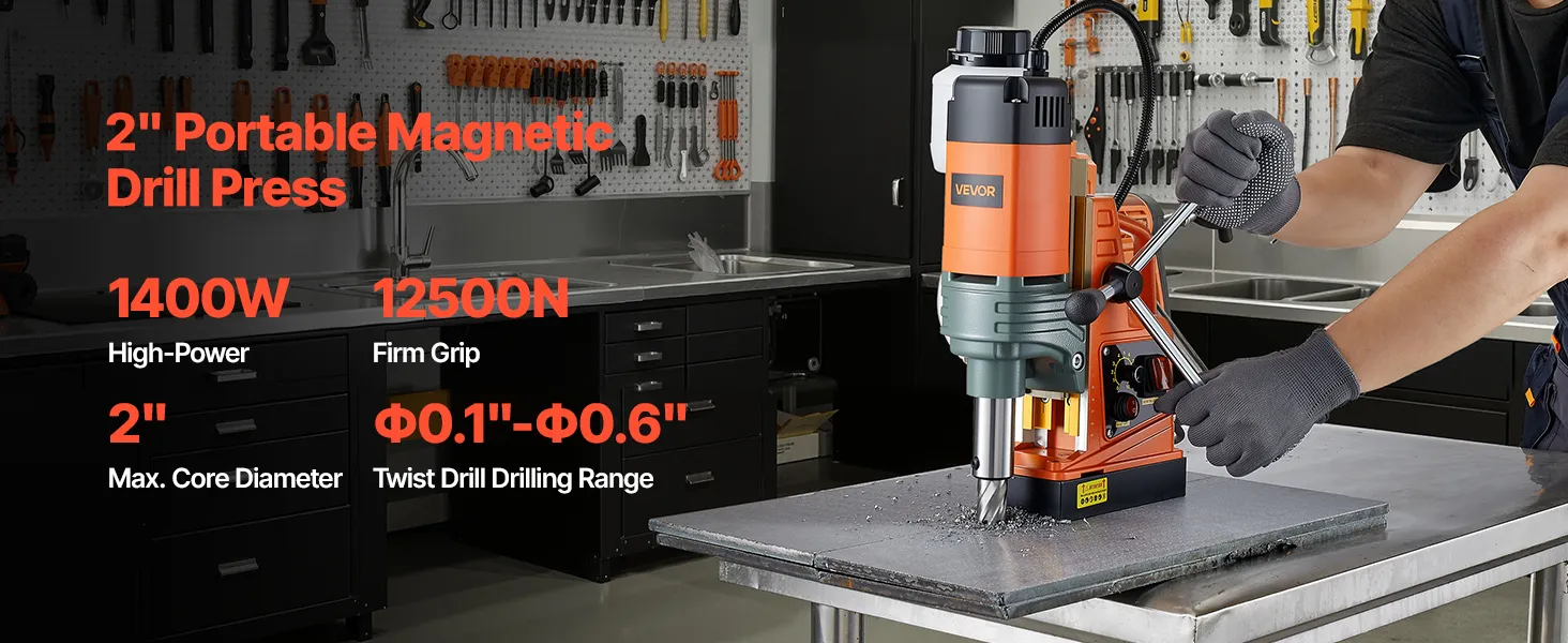 Jaudīga urbšanas veiktspēja: 1350 W motors nodrošina efektīvu urbšanu. Magnētiskā urbjmašīna atbalsta vainadziņu urbuma diametru līdz 50 mm un spirāles urbšanas diapazonu 3–16 mm — piemērota gan precīziem darbiem, gan liela mēroga projektos.