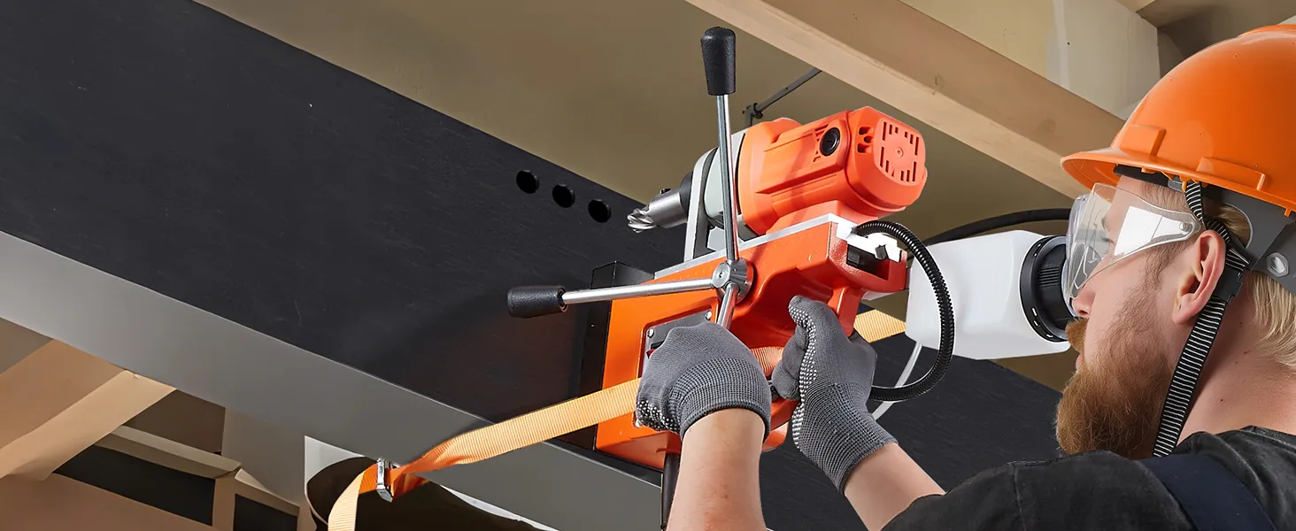 Spēcīgs magnētiskais spēks: Urbjmašīna ir aprīkota ar biezu, augstas tīrības pakāpes dzelzs pamatni, kas nodrošina līdz 12 500 N magnētisko pievilkšanas spēku. Tā stabili turas pat uz vertikālām vai slīpām metāla virsmām, garantējot drošu un precīzu urbšanu.
