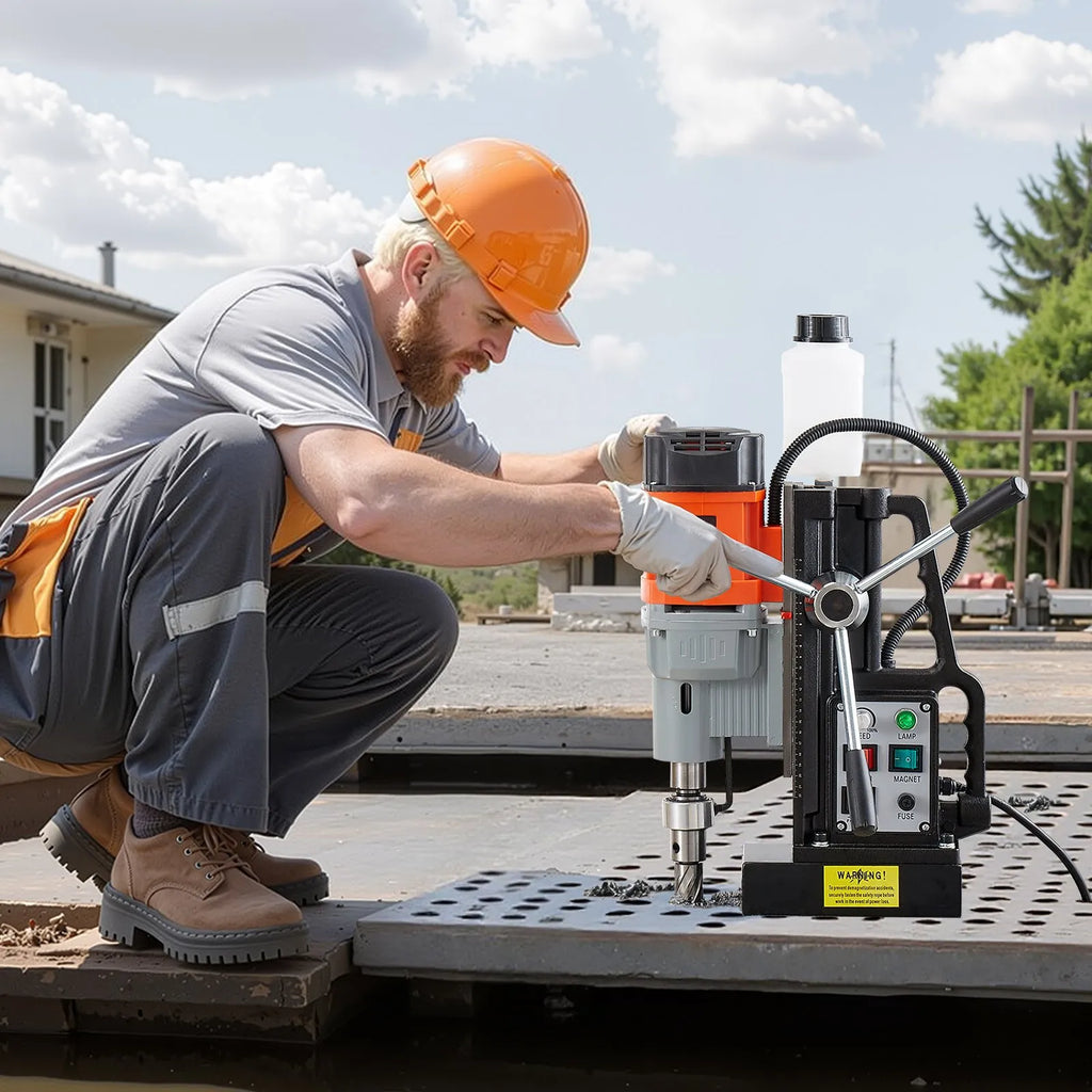 Spēcīgs magnētiskais spēks: Urbjmašīna ir aprīkota ar biezu, augstas tīrības pakāpes dzelzs pamatni, kas nodrošina līdz pat 13 000 N magnētisko pievilkšanas spēku. Tā stingri turas pat uz vertikālām vai slīpām metāla virsmām, garantējot stabilu un drošu urbšanu.