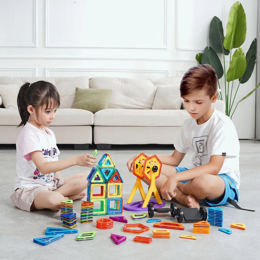 VEVOR magnētisko kluču komplekts, 123 gab., magnētiskie būvkluču elementi bērniem ar riteņu komplektu un panorāmas rata konstrukciju; STEM izglītojošā būvēšanas rotaļlieta bērniem no 5 gadu vecuma