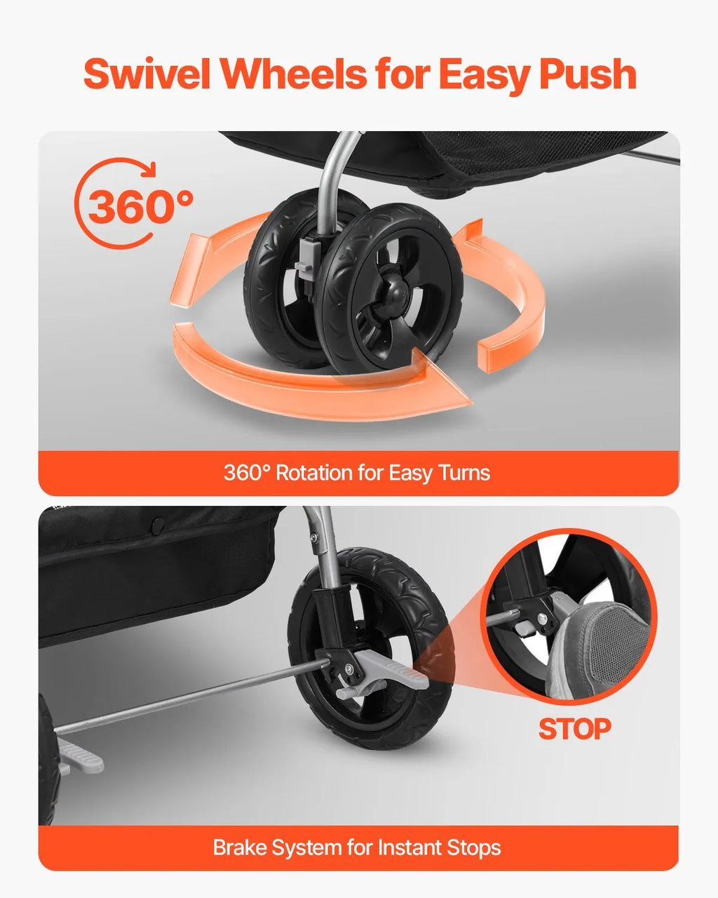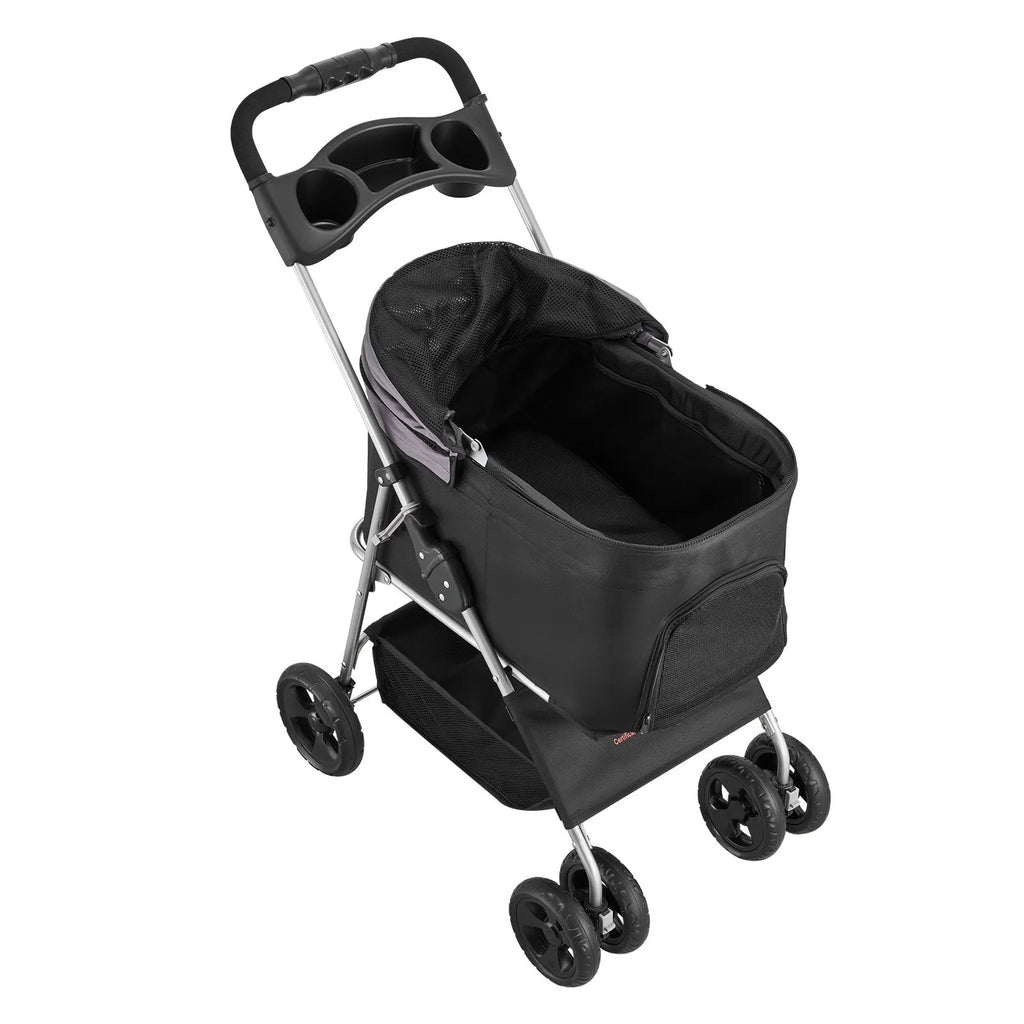 VEVOR mājdzīvnieku ratiņi, kravnesība līdz 16 kg, salokāmi suņu/kaķu ratiņi ar 4 riteņiem, noņemamu pārnēsājamo ieliktni un sieta logiem, pārnēsājams dzīvnieku ratiņš ar bremzi maziem un vidējiem mājdzīvniekiem