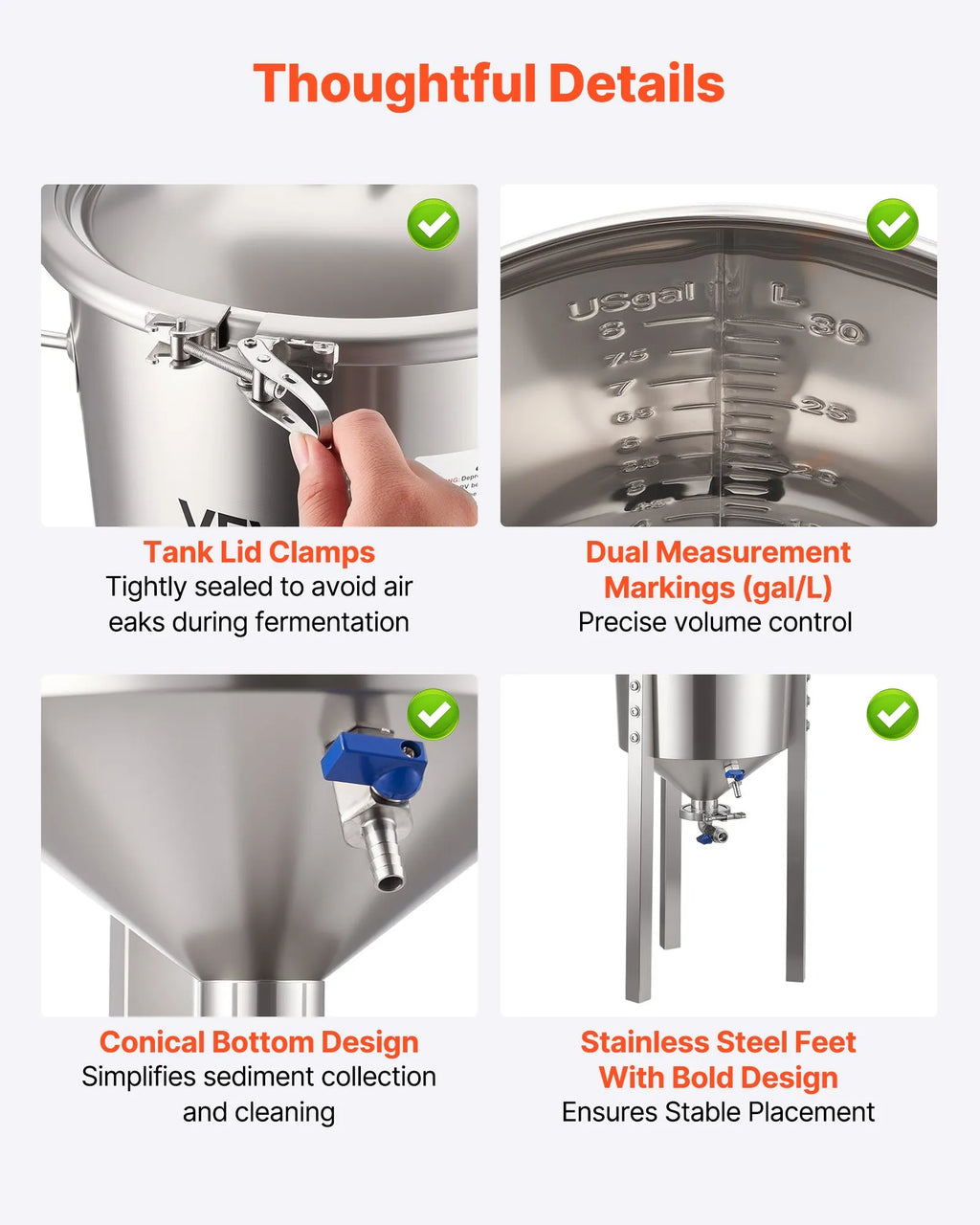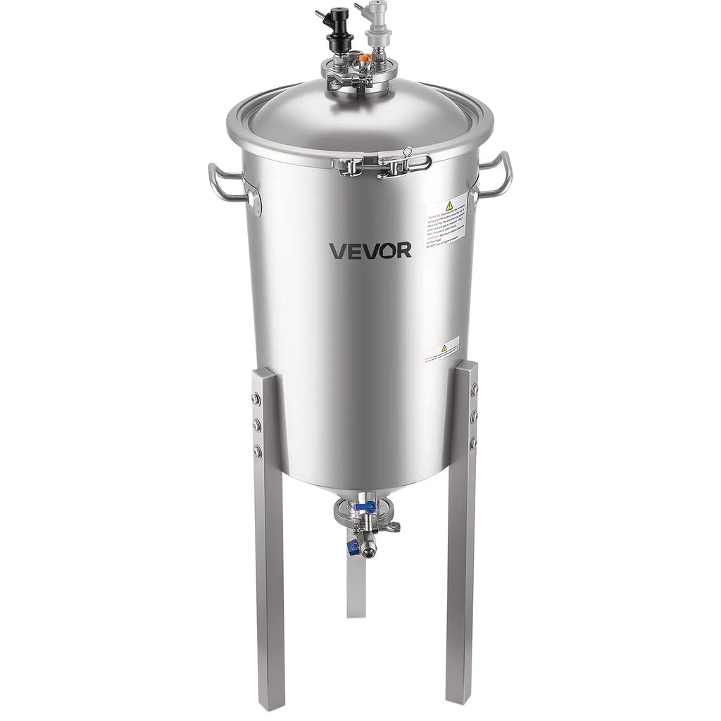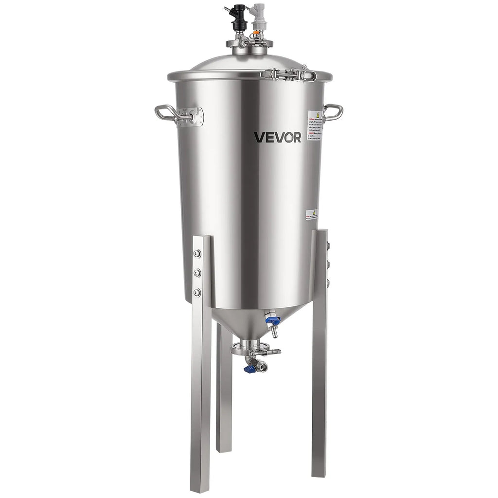 Profesionāla fermentācija: Koniskais fermentācijas trauks aprīkots ar pastiprinātiem rokturiem ērtai pārvietošanai un augstumā regulējamām kājām elastīgai uzstādīšanai. Praktiskais dizains un divpakāpju fermentācijas iespējas padara to ideāli piemērotu mājas brūvētājiem un nelielai ražošanai.