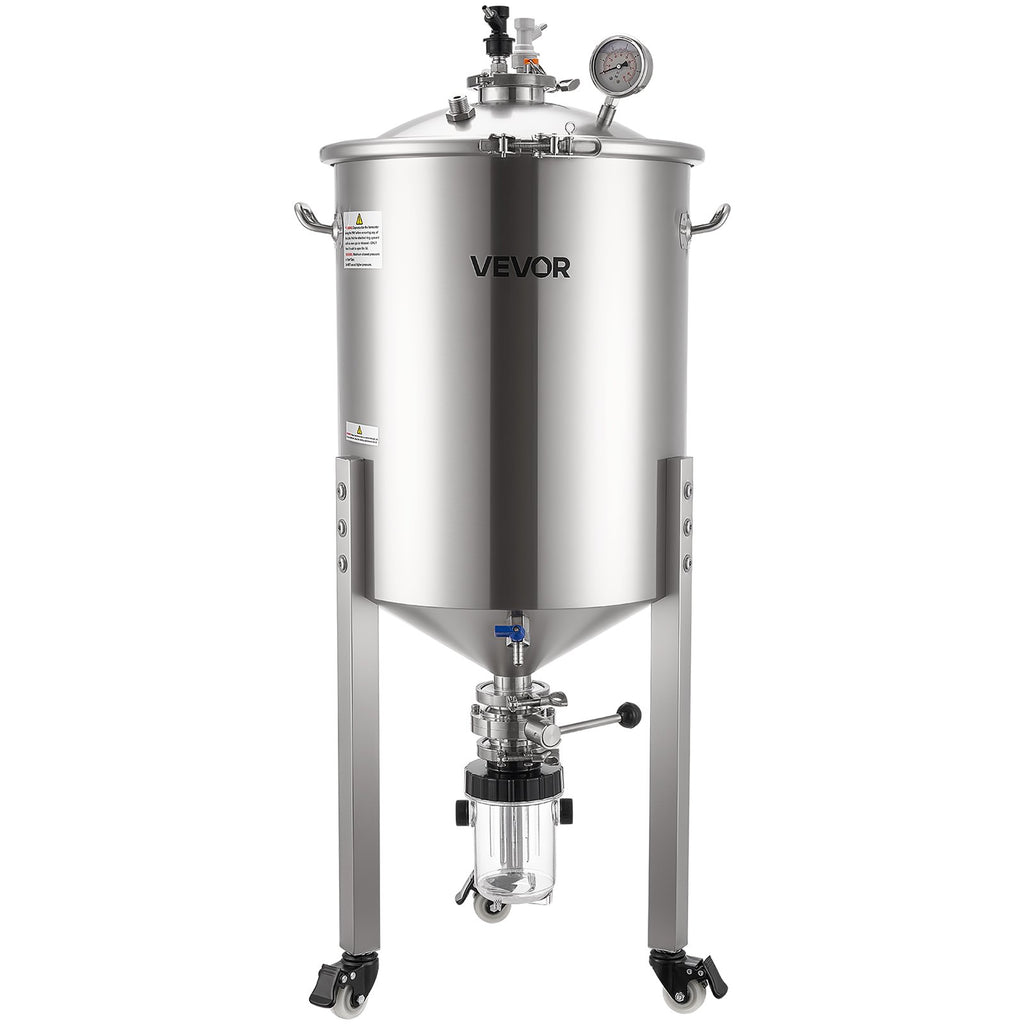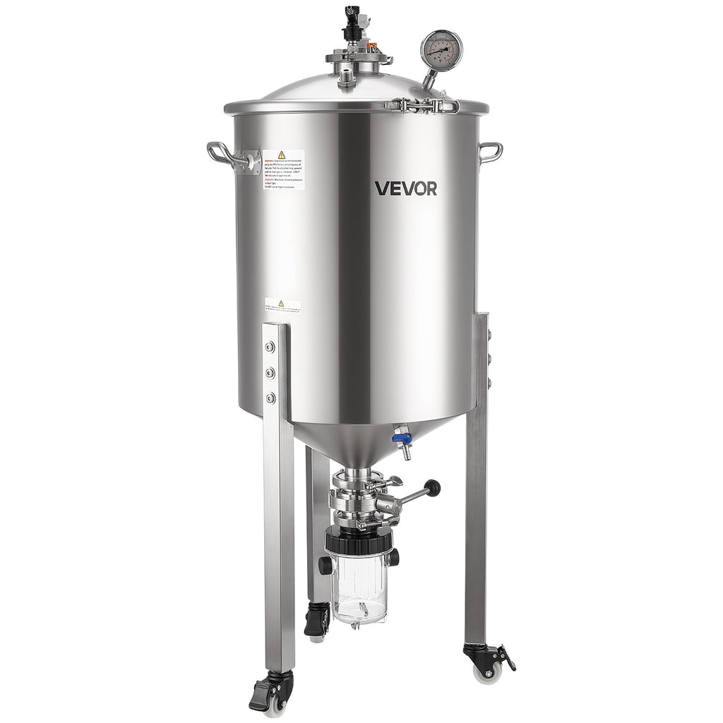 Profesionāla fermentācija: Konusveida fermentators ir aprīkots ar pastiprinātiem rokturiem ērtai pārvietošanai un ritentiņiem mobilitātei. Praktiskais dizains un dubultās fermentācijas iespējas padara to piemērotu mājas alus darītājiem un neliela apjoma ražošanai.