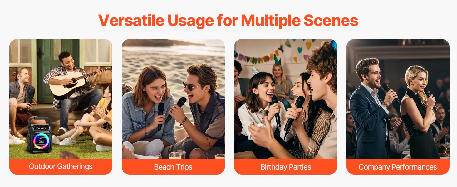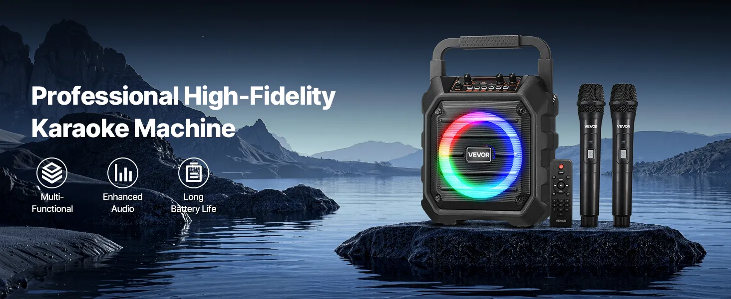 Mūsu pārnēsājamā karaoke ierīce ir paredzēta mājas izklaidei un nelieliem līdz vidējiem pasākumiem. Ar 2 bezvadu mikrofoniem un 5.1 TWS Bluetooth savienojumu var dziedāt līdzi muzikālajam pavadījumam un baudīt profesionāla līmeņa karaoke pieredzi jebkurā laikā un vietā.